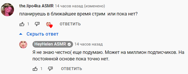 А вот я думаю, что последний.Следующие 4 года снимать однообразное мыло, меняя цвет фона,потерая микрофон.Ну чем еще она может разнообразить свой канал,ничем.Стрим на миллион будет своего рода экзаменом будущего стримов,на нем она посмотрит будут ли заебывать с вопросами о войне и стоит ли дальше сидеть на стримах,ей бы конечно хотелось.Так что снимать видео с только что проснувшейся ненакрашенной физиономией ,идя ко второму миллиону нет смысла