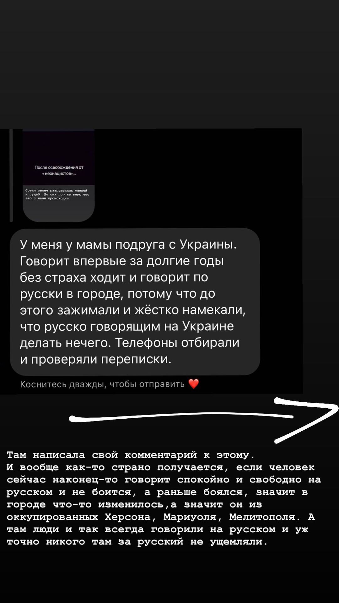 несколько вопросов: 1) почему Леночка не радуется тому что может быть в составе РОССИИ? 2) почему она в инст на украинском, в ютубе на русском 3) почему леночка забыла что ее хотели слить на миротворец тут? и ее в целом хотели нацикам слить , ей реально могло прилететь