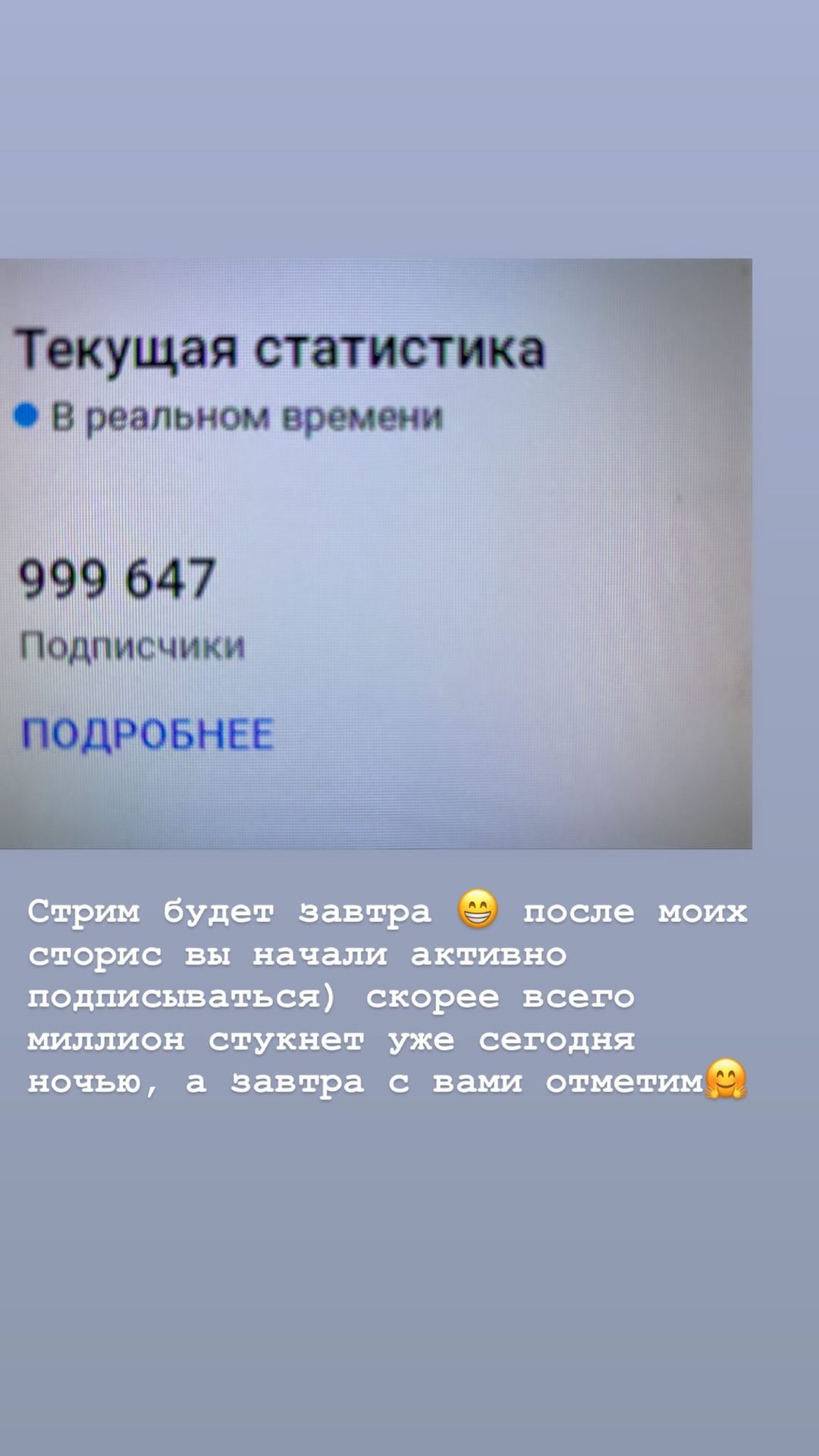 Интересно, 9 мая запустит стрим, если ровно в этот день наберёт лям подписоты? Или предпочтёт отгородиться от любимых котиков, чтоб не заёбывали вопросами сами понимаете с чем, и максимум что соизволит сделать для своих холопов это праздничный видосик и сторис в инсте?
