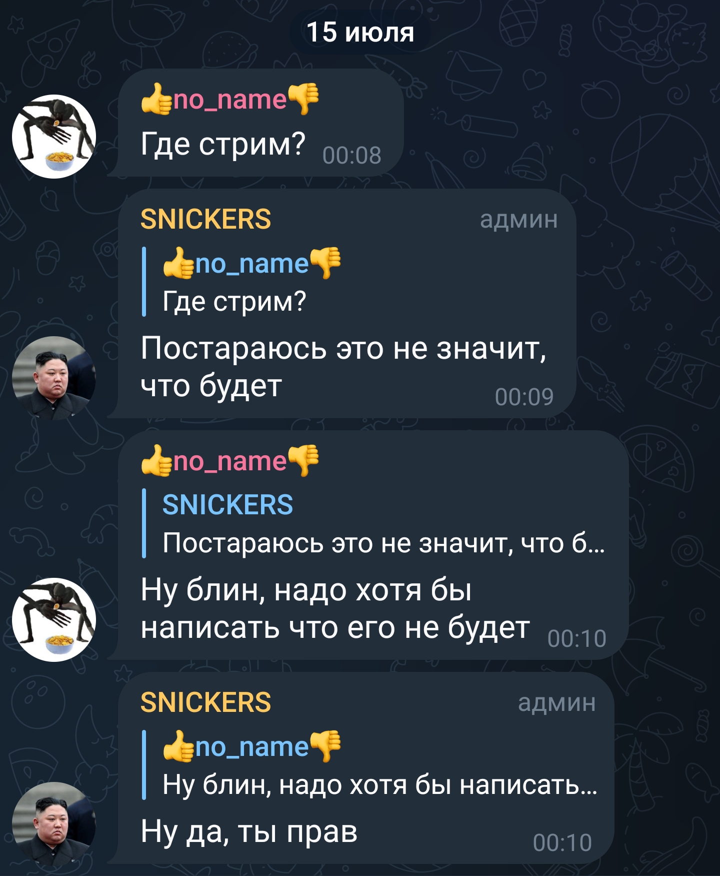 >>109016 Ты прочёл мои мысли. Лучший стрим среди последних. Тут и кринж, тут и бубы, тут и приколы типа "сенкью со мать, мать жива". Тут и асмр неплохой.
