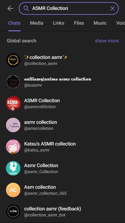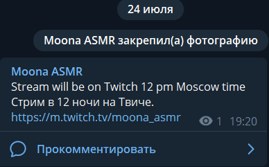 >>112932 Всё работает. В поиске телеграма вставляешь ASMR Collection, там канал с красной аватаркой, затем в поиске по каналу вбиваешь Moona и самая последняя запись это стрим.