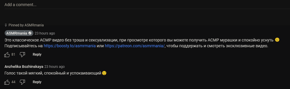 Тред для фанатов одного из старейших ASMR каналов Youtube на русском языке.