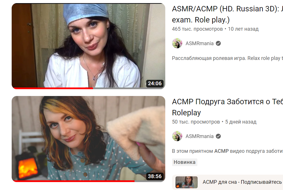 я не старопидарашу, но асмр мания мой первый канал, из-за которого я узнал об асмр лет 8 назад тогда и мыслей ни у кого не было о блядочнивсте в этом сегменте это был уникальный экспириенс в плане биноурального звука в ролплей видосах