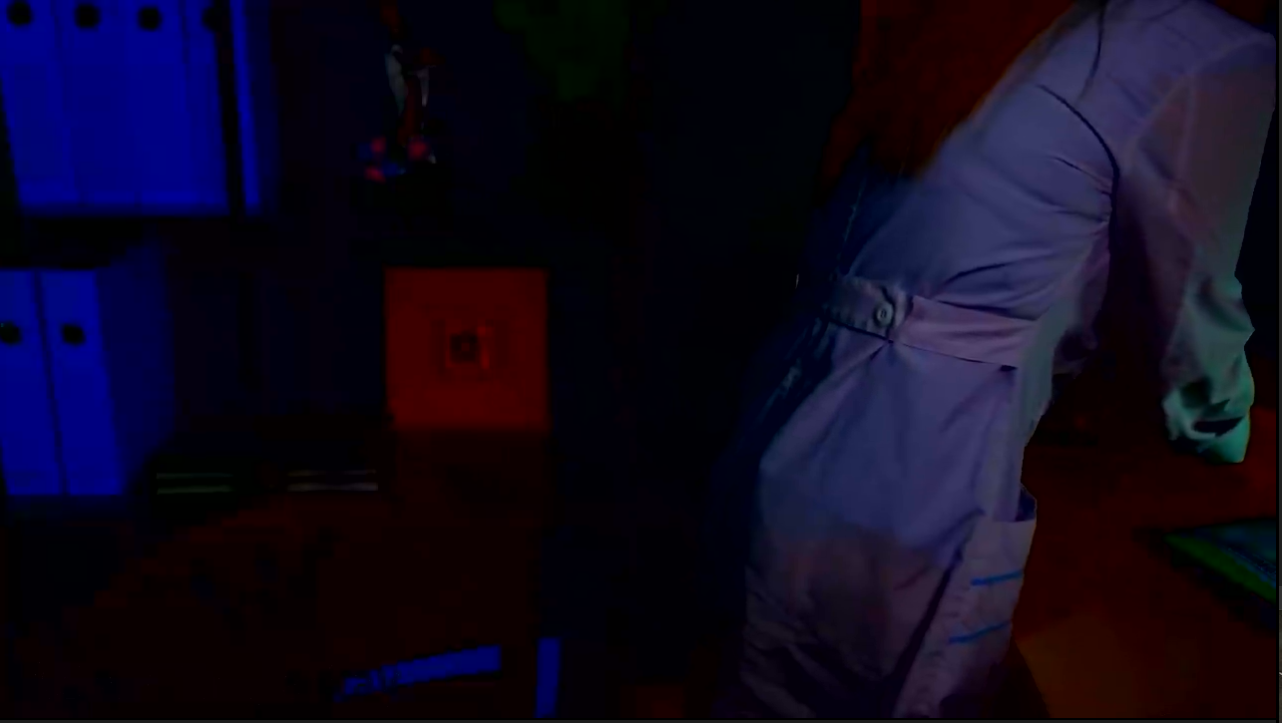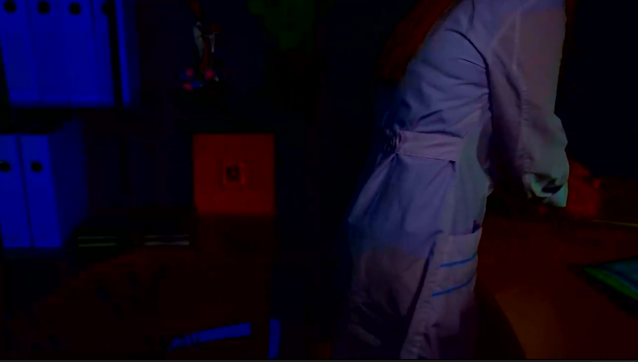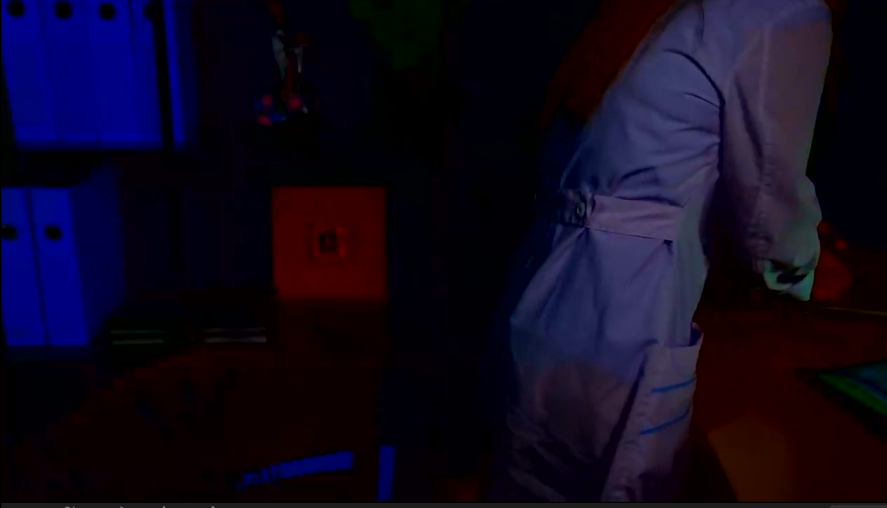 >>143380 Если начало посмотреть, то там она в красном пиджаке, а под ним белая полоска, как бы лифчик. Но потом, если смотреть по уровню, где должен быть этот лифчик, то его там нет. На скрине это видно