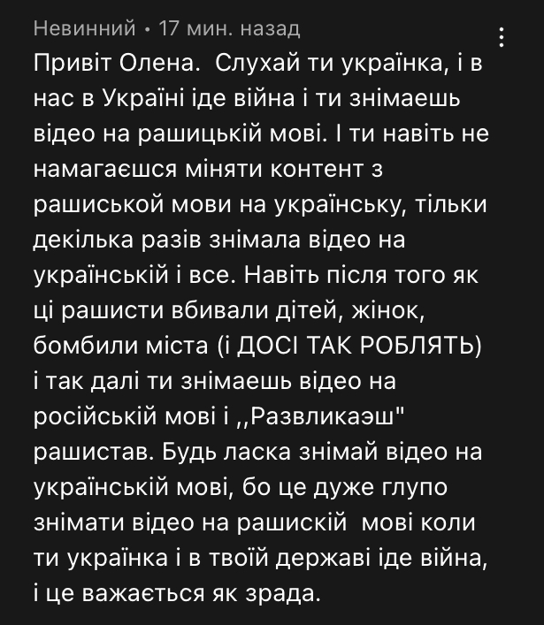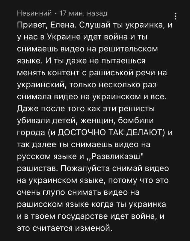 Какой-то залетный Васян решил впрячься за Лену и ее видео на русском и даже не понял сюр в ситуации, что на русском Леначка говорит исключительно чтобы делать деньги. Бедный куколд(