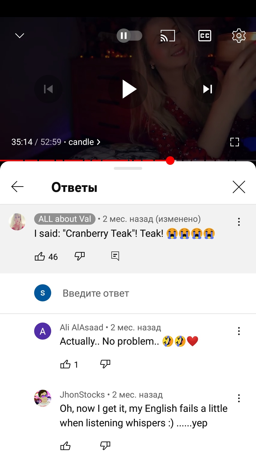 >>124603 >по контингенту треда Тю. Нашел на кого ссылаться. Да и чувак, из коментов, перевозбудился на пустом месте. Нет же в видосе нихуя. Честно говоря видос посредственный. Мало того что угол ужасный, так и ей самой ещё не удобно было снимать. Если б не подушка под жопу, она б ахерела на этой острой спинки дивана. Так и не бережет себя. Тремор в руках. Нервы видать ни к черту и график сна похоже сбит, трясет ее от перенапряжения. Но самое главное, как же ужасно она похерила звук при чем заранее об этом говорит(. Я думал у меня наушники накрылись. А это у нее что-то с микрофоном. Как будто он был прислонён во время записи к полу или к стене и к мебели. Ощущение было как будто давление подскочило и башка моя щас лопнет. Ужасно не приятный фоновый шум/гул как будто ещё по стойке микрофона топчется кто-то. Уши прям напряжены все видео от давления созданного этим шумом. Последний раз не приятное видео было на патрике и теперь вот тут. Вообще, в последнее время много халтурных склеек у нее. Даже переходов не делает. На отъебись хуярит. Все чаще и чаще слушаю ее, а не смотрю. Голос и шепот просто услада, интонации, усмешки флирт поцелуи это прям ее козыря. Никогда не подводила.