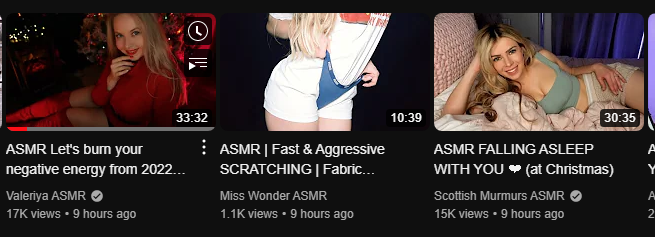 Без рекомендаций новым зрилам этого не происходит. А ютуб уже выкинул её канал из рекомендаций, это называется теневой бан. У неё давно нет новых подписок, какие бы хорошие видосы она не выпускала. По большому счету её асмр карьера закончена, миллион она никогда не получит. Думаю, скоро плюнет на все и уйдёт как Пелагея. Ну или будет пилить наотъебись.