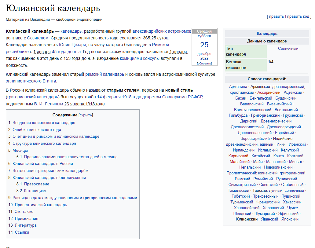То есть сегодня для православных староверов 25 декабря 2022 года, а 14 января для них новый год.