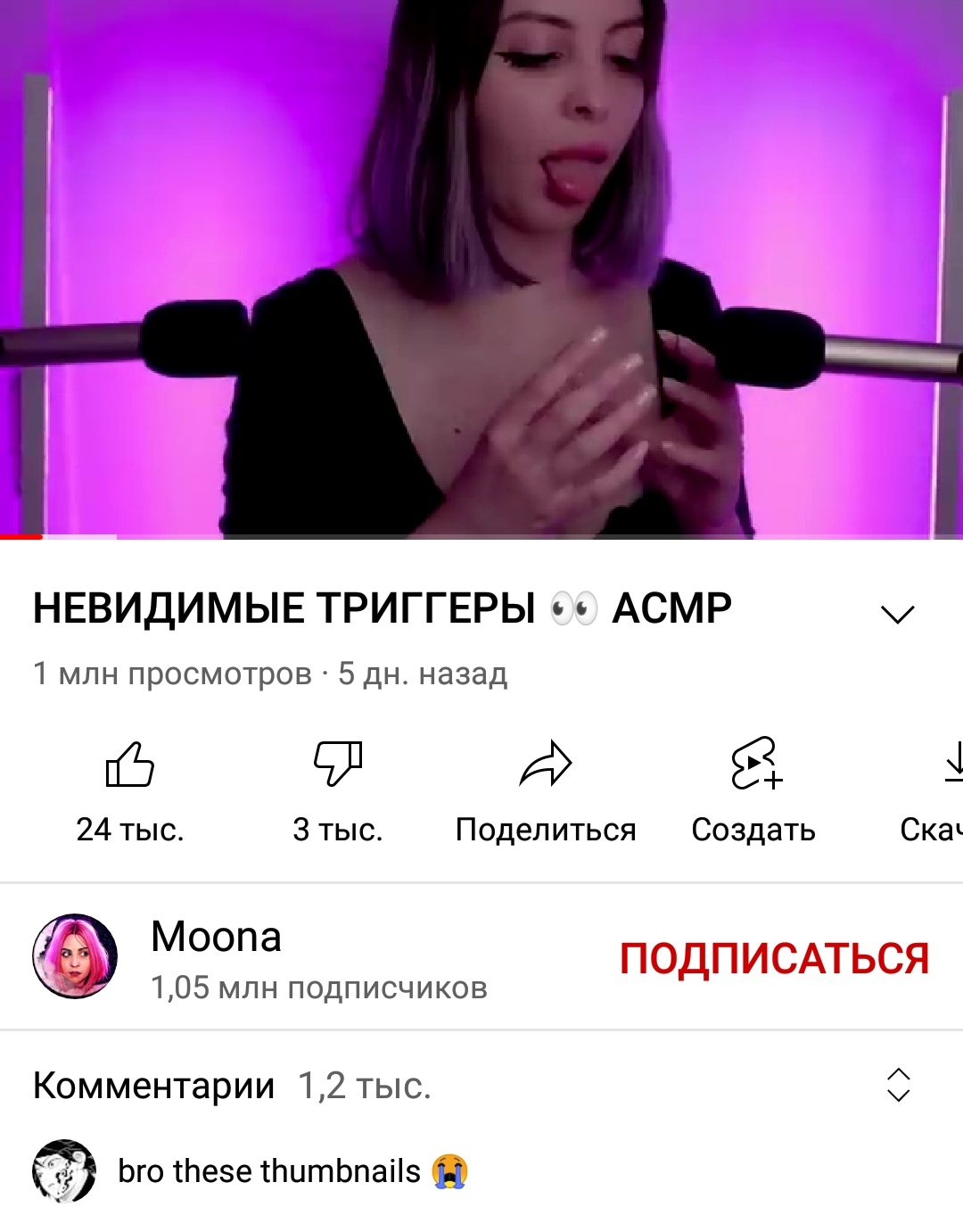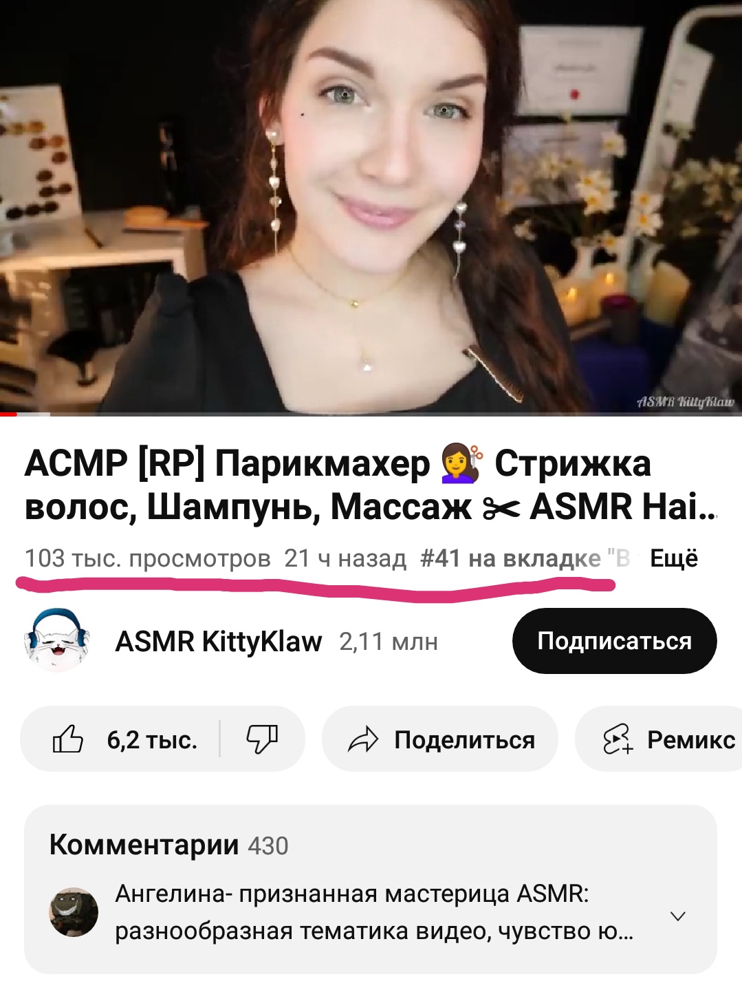 сейчас именно в сфере асмр очень суровая модерация. отчасти это связано с самими асмрщицами, которые проталкивали месседж "асмр это не порно". они по сути сами себе обрубили просмотры тем самым. это фактически привело сначала к самоцензуре, а после уже модерация ютуба подстроилась