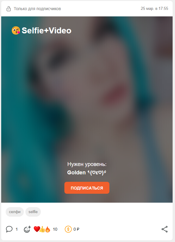 при этом она могла бы поставить прайс в 500 рублей и подписалось бы человек 50 минимум, это было бы 25000Р, причём более регулярных, т.к. 500 рублей за годный контент да многие бы подписались, это не бабки за такой кайф, поддерживали бы приучались к тому, чтобы платить и не ждать сливов