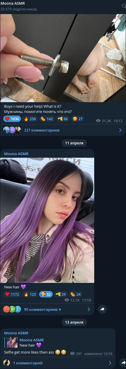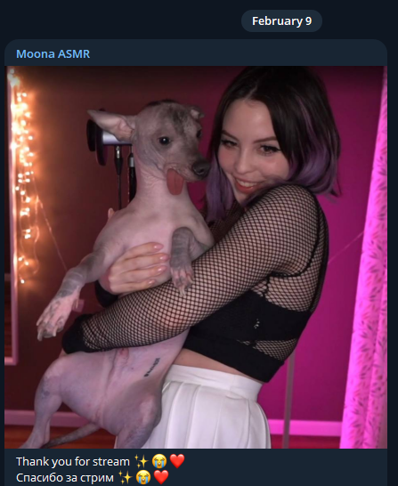 В телеге поищите группу moona jopa или moonajopa. Там скрины и запись. В комментах буквально на секунду появилось сообщение со ссылкой и его подчистил админ в телеге у муны. Сейчас прям горячо у неё в комментах, чистят мощно. В общем весёлый стрим был:)