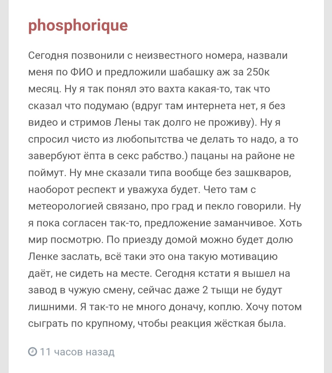 Фосфорик в треде. >>133779 ^ вот этот человек прав. Я в какой-то момент вообще забил на донаты, она чуть ли не каждое моё сообщение читала, даже те которые были сказаны в пустоту и их можно было не читать. То есть она прямо таки расположила меня к общению, можно сказать диалог был. На следующий стрим фулл игнор от чего я и сгорал. Хз как это работает и что у неё в голове порой.