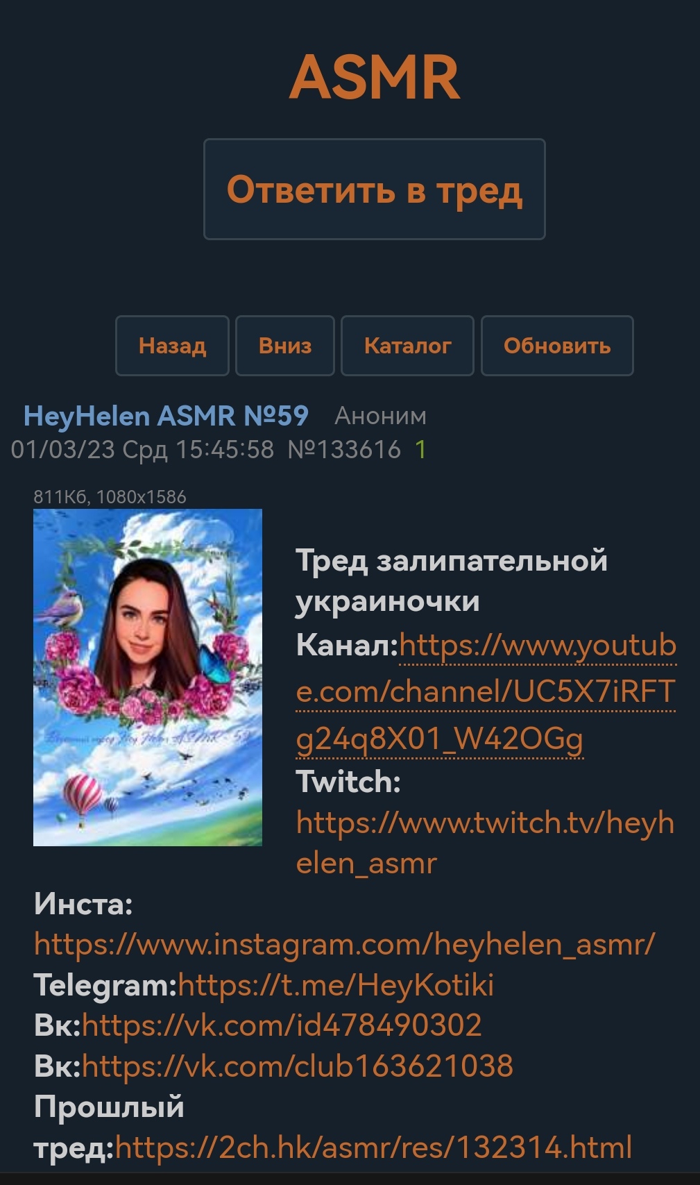 >Я не шлюха и не даю ни единого повода котикам дрочить на меня. Я же ведь не раздеваюсь полностью, как другие асмртутки, значит я не шлюха. А то что влюблённые в меня такие котики как дениска глиф способны обдрочиться на любую мою часть тела - это уже их проблемы, это они извращенцы, а я чистая и невинная. Я никого не пытаюсь к себе привязать, я такая какая есть, все мои эмоции откровенны и от сердца, я не надеваю никаких масок - на стримах и в видосиках я настоящая. Вы же знаете, что я с вами не ради денег, а ради живого общения и эмоций. Поэтому приходите ко мне на стримы и одаривайте меня комплиментами, ведь я этого достойна, я богиня асмр, а возможно даже просто богиня!