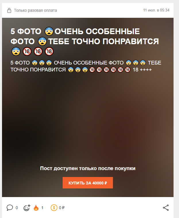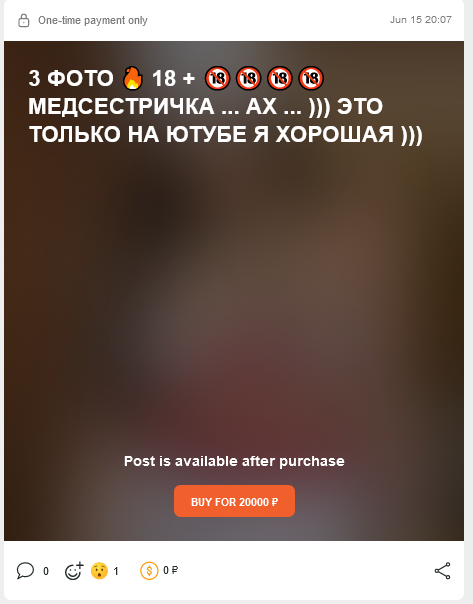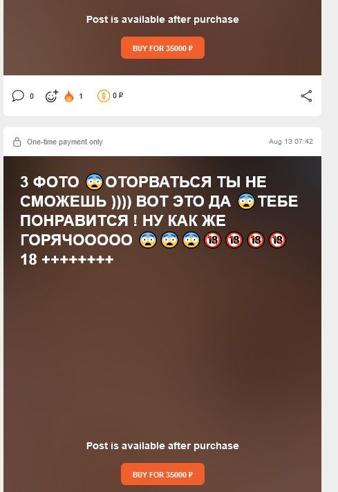 а тут 100$ и даже сисек нет. это вообще ахуй жадности. я уже молчу про одиночные посты по 30-40К рублей за 2-3 фотки. 300-400$ ебанутая