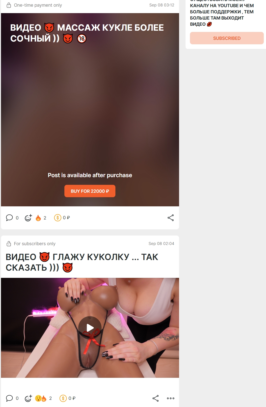 помню когда Шурыгина только первые нюдсы стала продавать у неё подписка была 10$, Арина АСМР сиськи в приват телегу за 15$ продавала, Аморант сиськи за 5-10$ продаёт, я могу продолжать до бесконечности..
