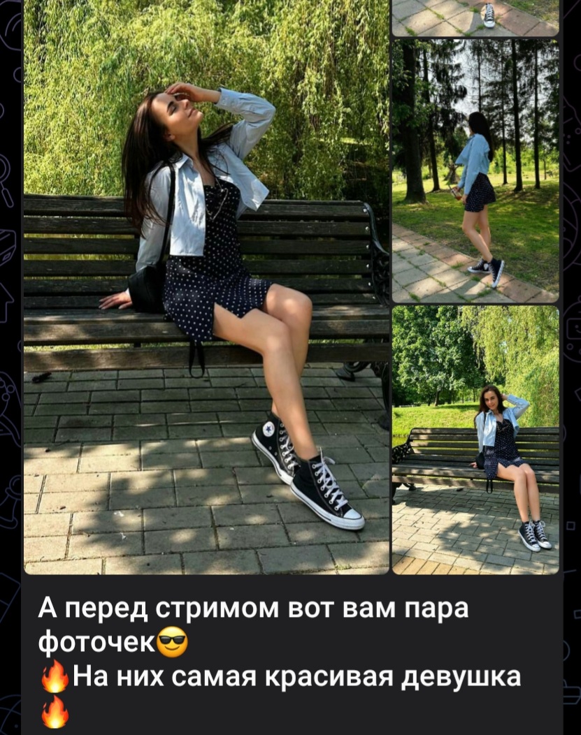 Фотки в новом платье опять выложит только завтра перед самым стримом, как горячие не успевшие ещё остыть пирожки, чтоб больше комплиментов получить?