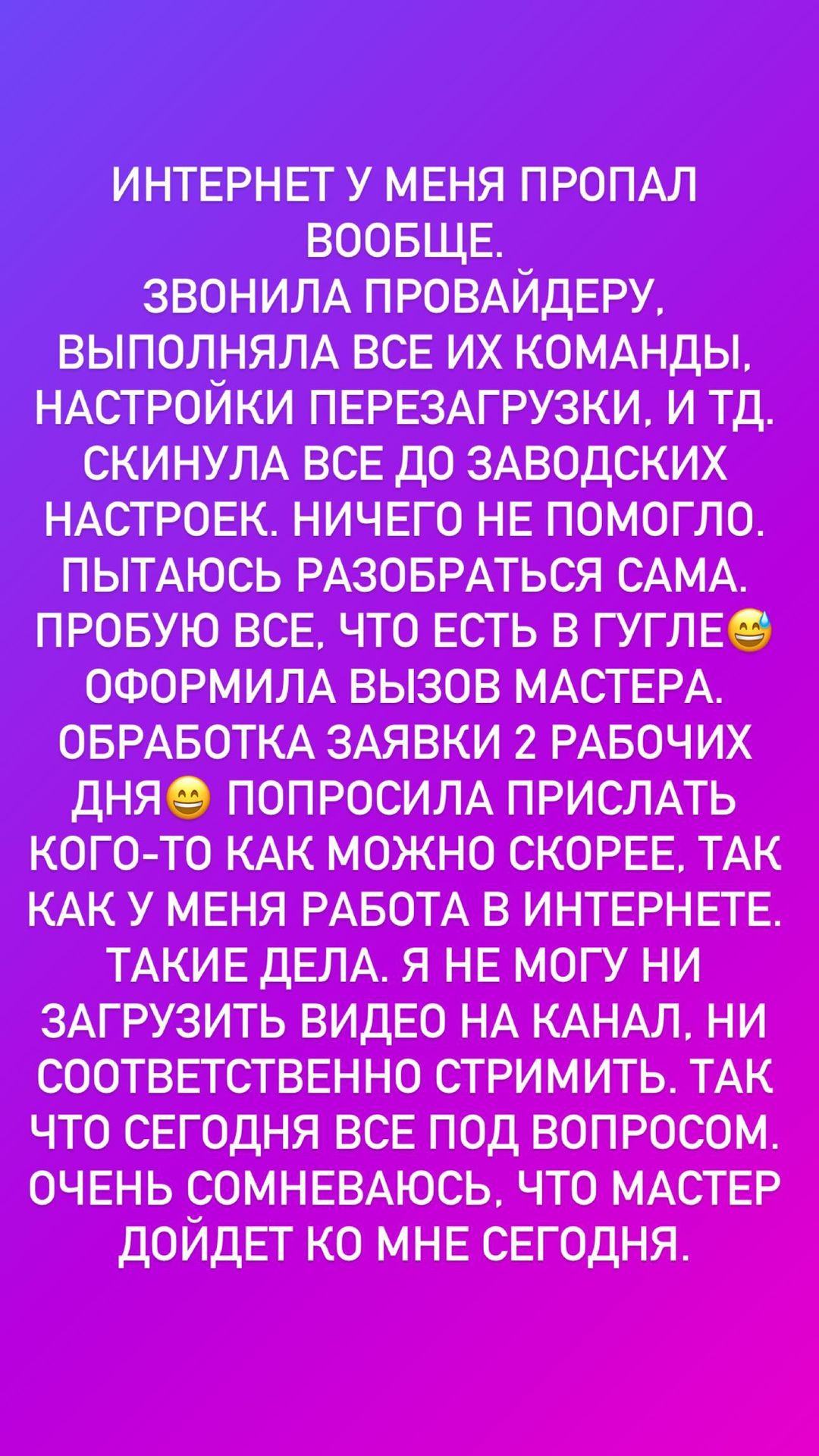 >>139567 >забаню в телеге Изначально, Лена создала телегу без какого-либо желания ее вести. Только потому что её просили. Сразу почувствовался ее похуестический настрой к телеге. Заходил туда пару раз когда ещё коменты были закрыты - унылое гавно наотъебись. Я подписан на КК, но она хотябы сама ведет ее и что-то постит, фотки, опросы, отвечает, какой-то интерактив с аудиторией, но лене похуй, у нее есть инста. Так что не понимаю что вы тут все с телегой носитесь. Раз активничает она в основном в инсте. Разве что там у нее все россияне, а в РФ инста таво....