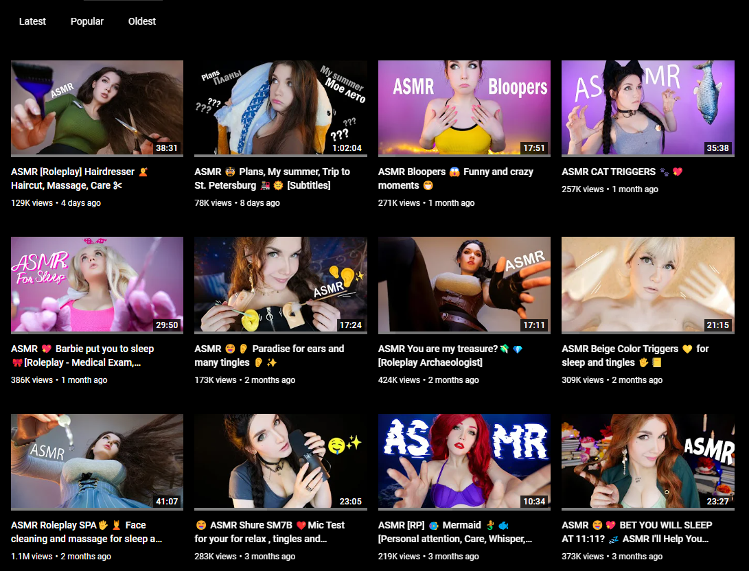 >>145234 ))) самообман позволяет ей думать, что она реально крутая асмрщица, а не привлекла аудиторию своими околосексуальными косплеями и лизанием микрофона до того как ютуб не начал бить по рукам за это
