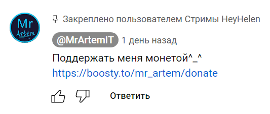 >>142941 Артёмка, а что ты не оставил ссылку себе на донат под последним залитым сегодня стримом? Или уже боишься, что хозяйка накажет? Правильно, бойся! Так что смотри клип и беги скорей удалять ссылки и под всеми остальными своими перезалитыми стримами! Она, кстати, не про тебя тут говорит? А если не удалишь, то Лена забанит твой канал, вот он: https://www.youtube.com/@MrArtemIT