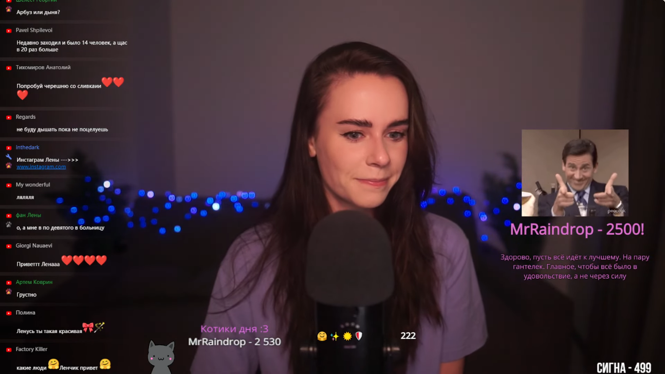 Точно знает в какой день и во сколько будет стрим Знает всю актуальную информацию из жизни Лены Знаком со всеми легендами чата Общается на интересные и важные темы Лена знает тебя по нику десятки друзей Учишься быстрой печати 10 часов контента в неделю