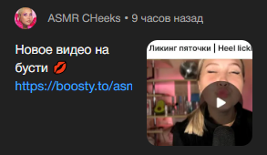 Относительно новенькая милаха. Очень милая и только делает первые шаги в более обширную аудиторию.Работяги, есть у кого чем поделиться?https://boosty.to/asmr_cheeks/posts/6bbeec9d-30bd-4438-9306-0a4b06341872