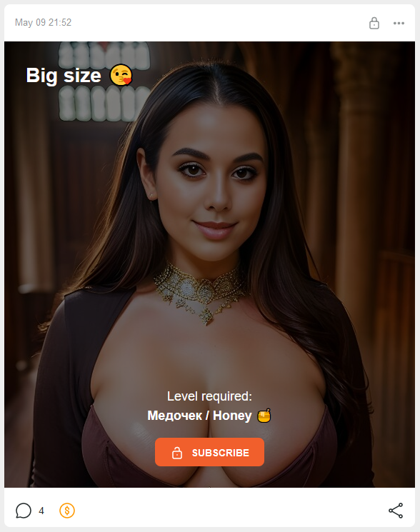 Есть ещё фотки в канале откуда я всё это беру, но они залочены за покупкой у бота ценой в 400 рубасов :3 Я бы купил, но я живу не в Рашке и русской карты нету, так что оплата не проходит, если у кого то будет желание, можете поискать и закинуть, 400 рублей за (как я понимаю) ВСЕ её фотки это не так много...
