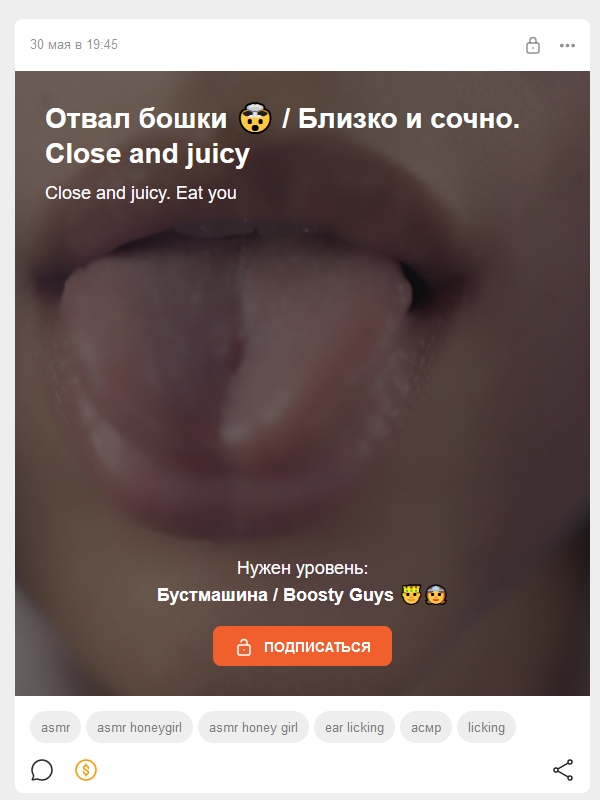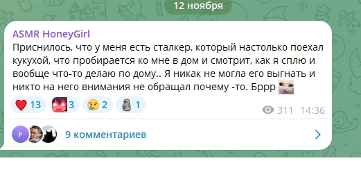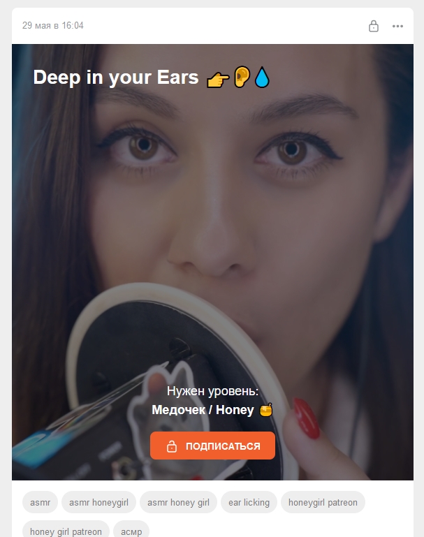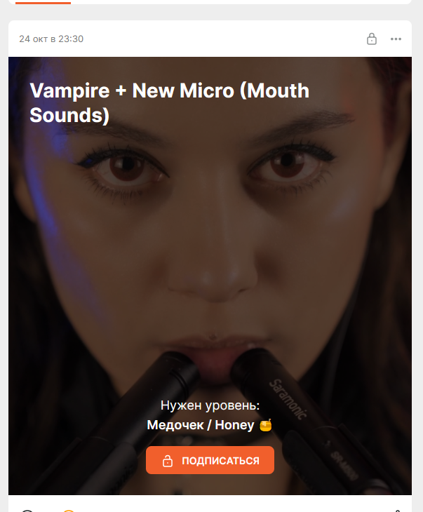 >>184064 Кто эти ебучие ликиги смотрит? Ни одной ролевухи, шепота, триггеров, вообще того, что хоть как-то к асмр относится. Только лизание дешман микро с ушами, пиздос. Хорошо, хоть жрать на камеру перестала.