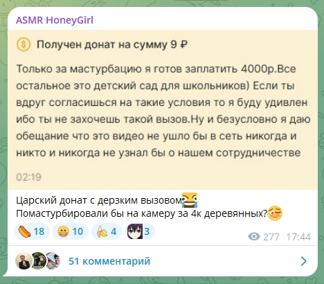 >>186331 ей 4к просто так лошки кидают, я думаю если на ноль больше то согласится. опять же дура дельфин не показывала пизду пока ей просто так донаты не перестали кидать, а тут пацаны просто так кидают.