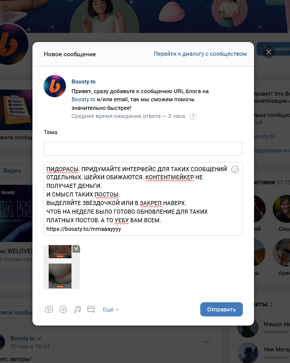 ты сама сказала что жалеешь о создани бусти и готвоа от него октазатсья ибо есть поддержка мужчин друзей и мужа.