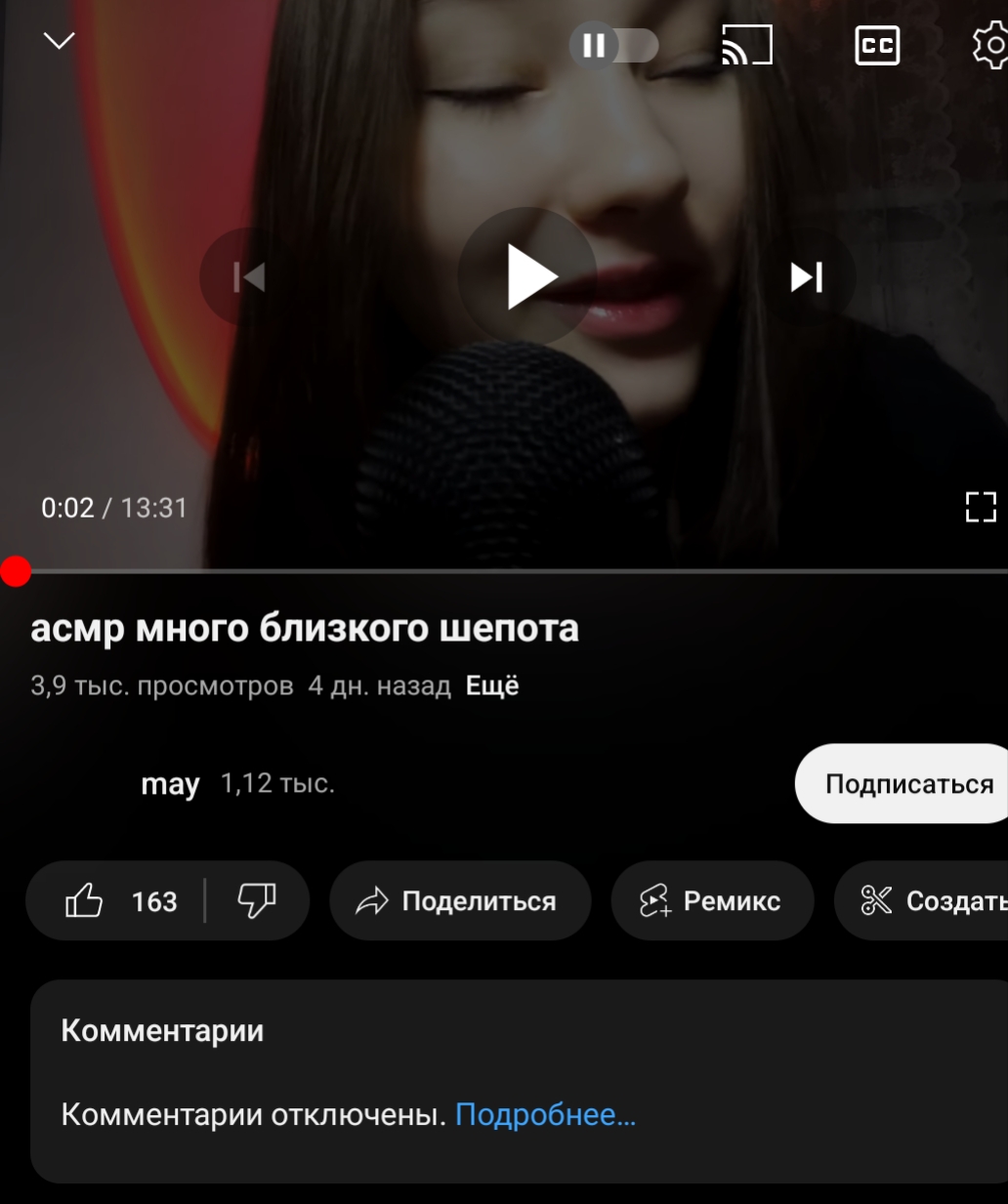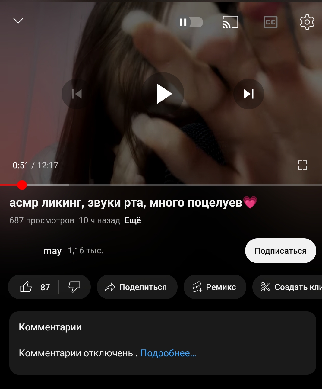 но линят ьс канала где на однмо видео 100.000 просмотров и создаать нвоый канал - странное решение , эта цифра является мечтой для многих даже не в асмр нынче.