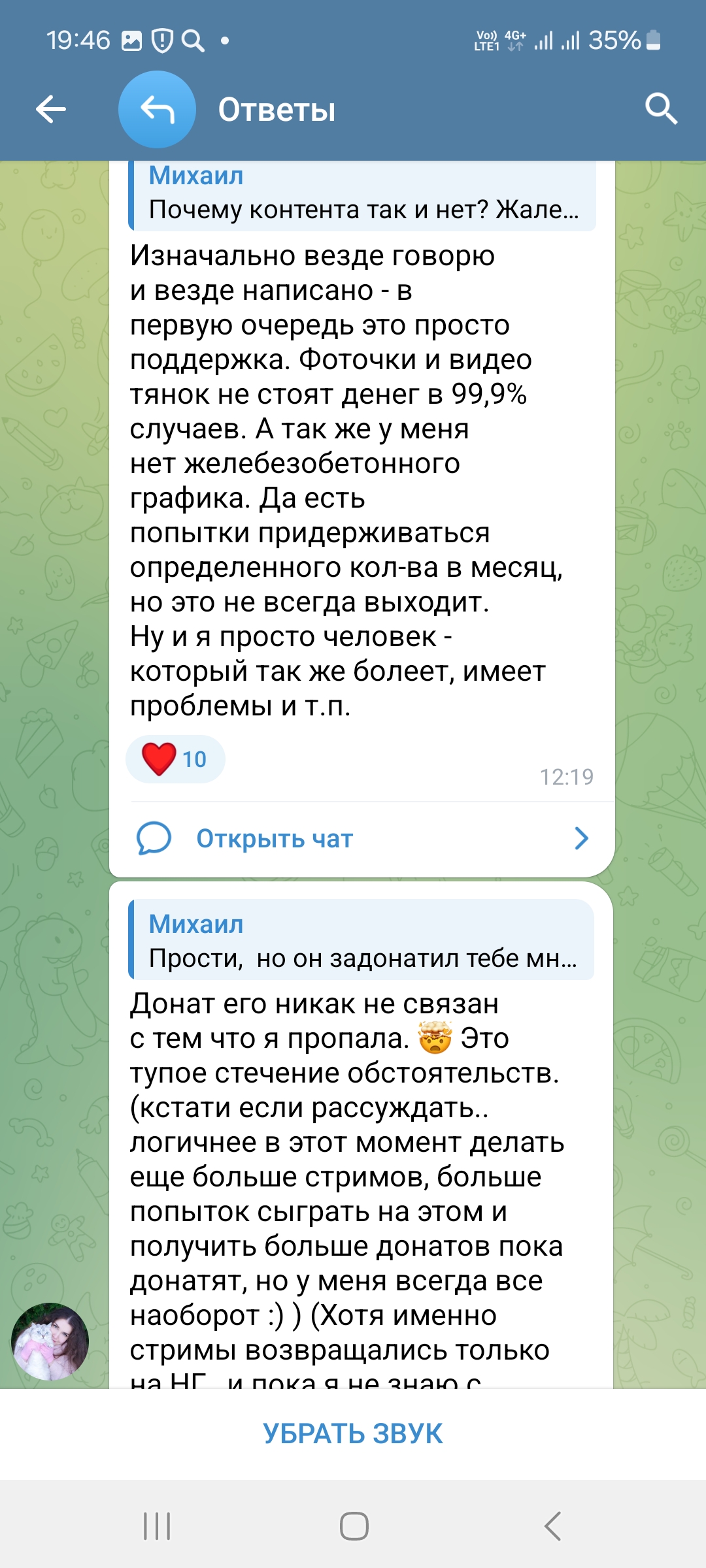 Как и предполагалось. Эта ленивая жопа, ничего нового для бусти не опубликовала. Сочувствую челам, которые "поверили" и подписались на этот скам. Не сочувствую типам, которые задонатили на это 5к в бусти (идиоты) лол). Короче если всё-же это беременность, то пока срок маленький, это можно ещё будет скрывать некоторое время. Но её действия лишь с каждым разом вызывают подозрения. Такой шизы от неё ещё не было никогда.