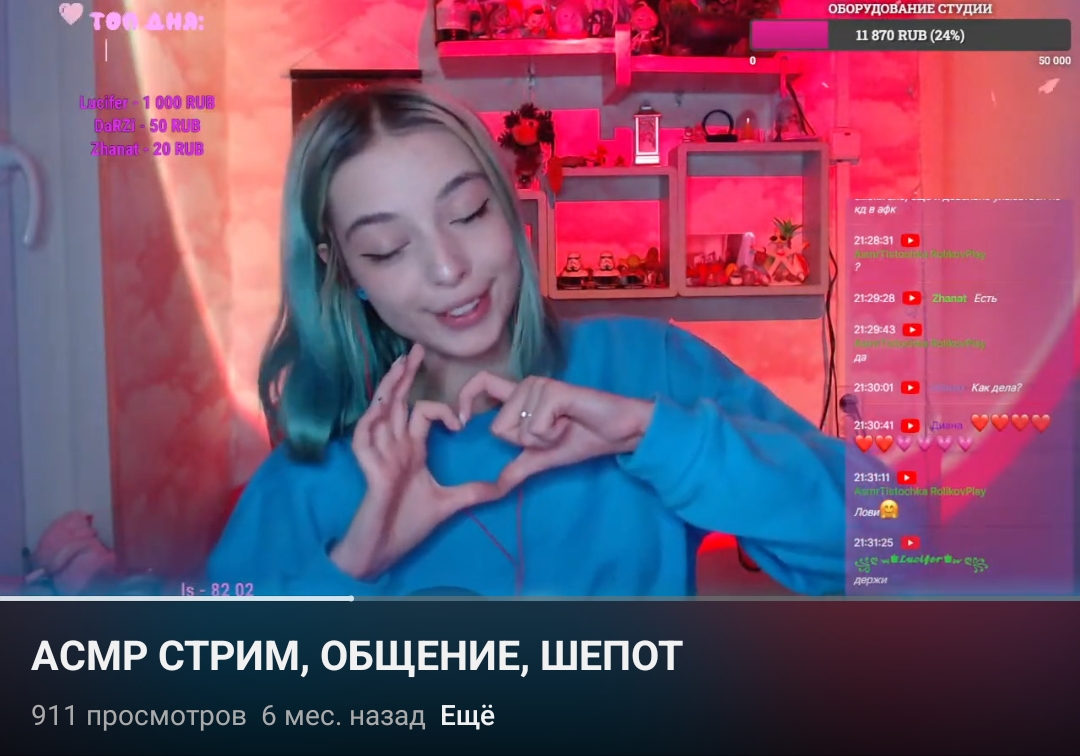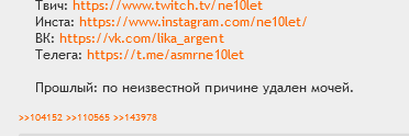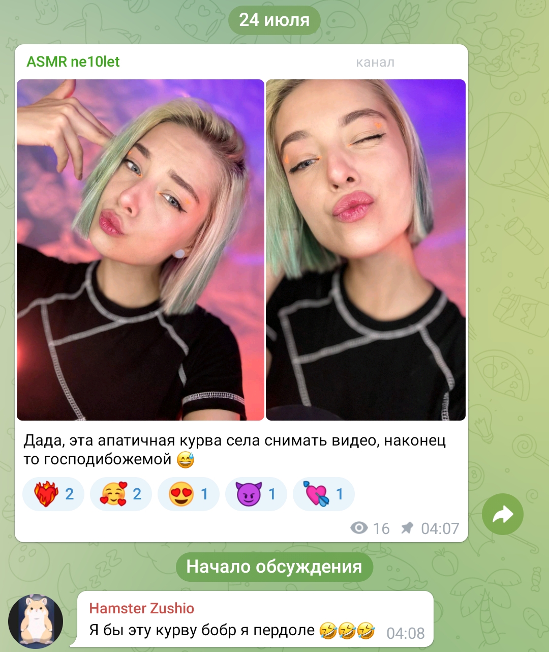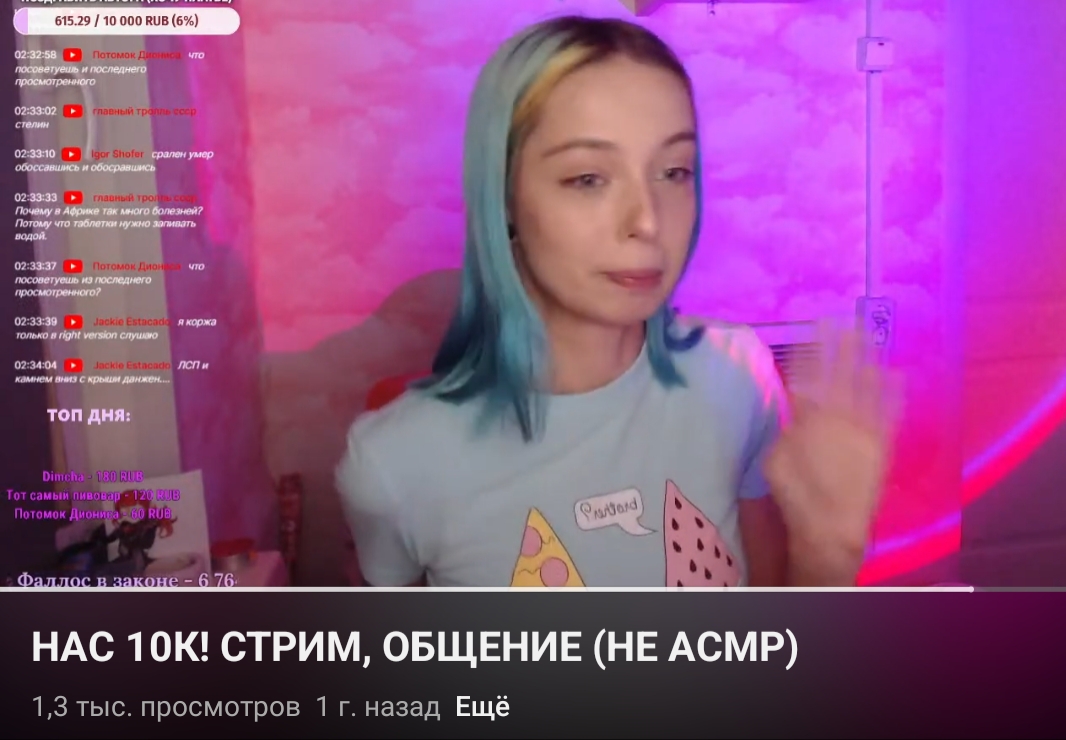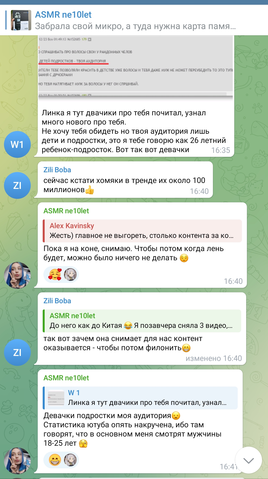 ну модератор её который все сюда постит и во всех каналов асмр активно участвует, и у муны и у малины и у Киттиклав он везде просто постоянно и он постоянно из дома вещает, то есть он инвалид видимо...