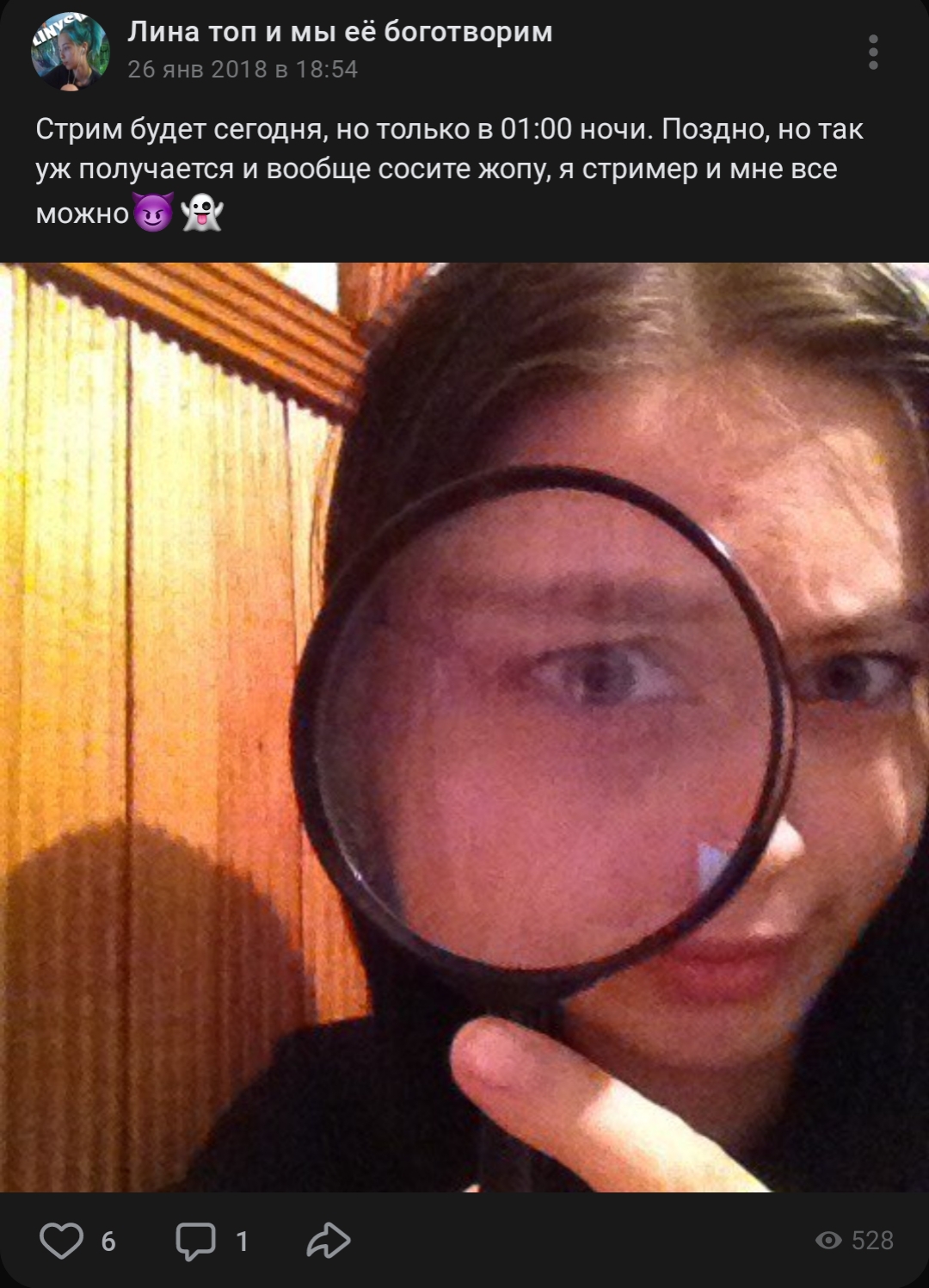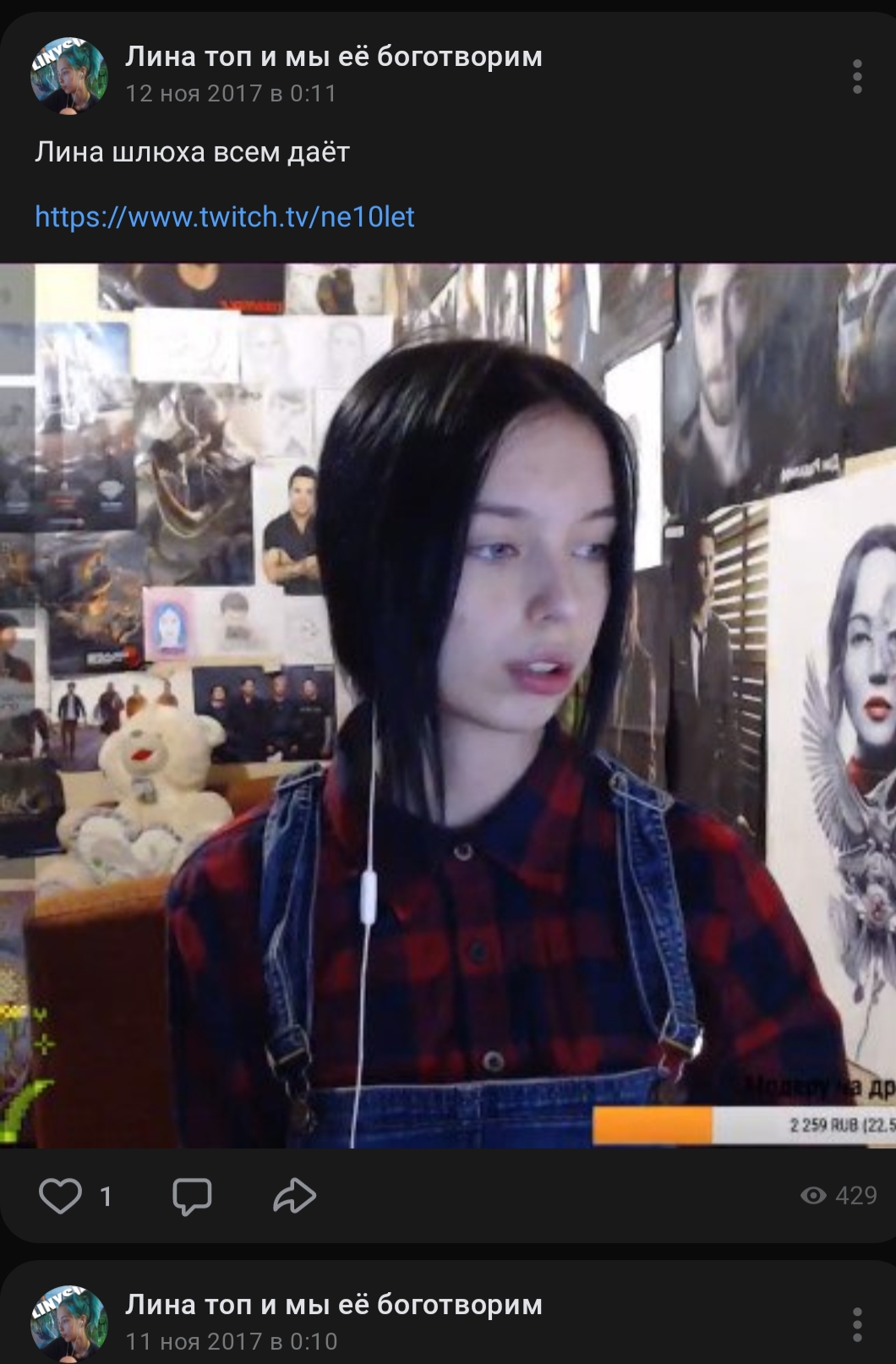 2. забавная конечно эта Лина, на улицу выодит ненакрашенная вечно, зато ан видосы кучу штукатурки наносит макияажа всякого, мне кажется бипоялрчока всё же присиуствует в лёгкой форме ну или она реально глупая или реально кучу дела делает о которых просто не рассказывает, ун работу может ищет или... подрабатывает уж не знаю кем даже если без косметики ан улицу идёт.
