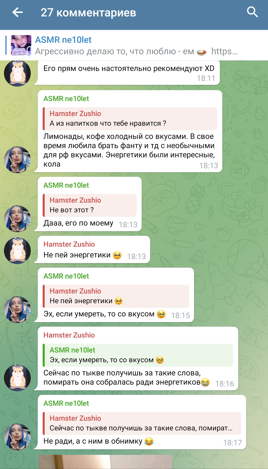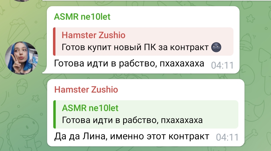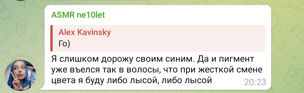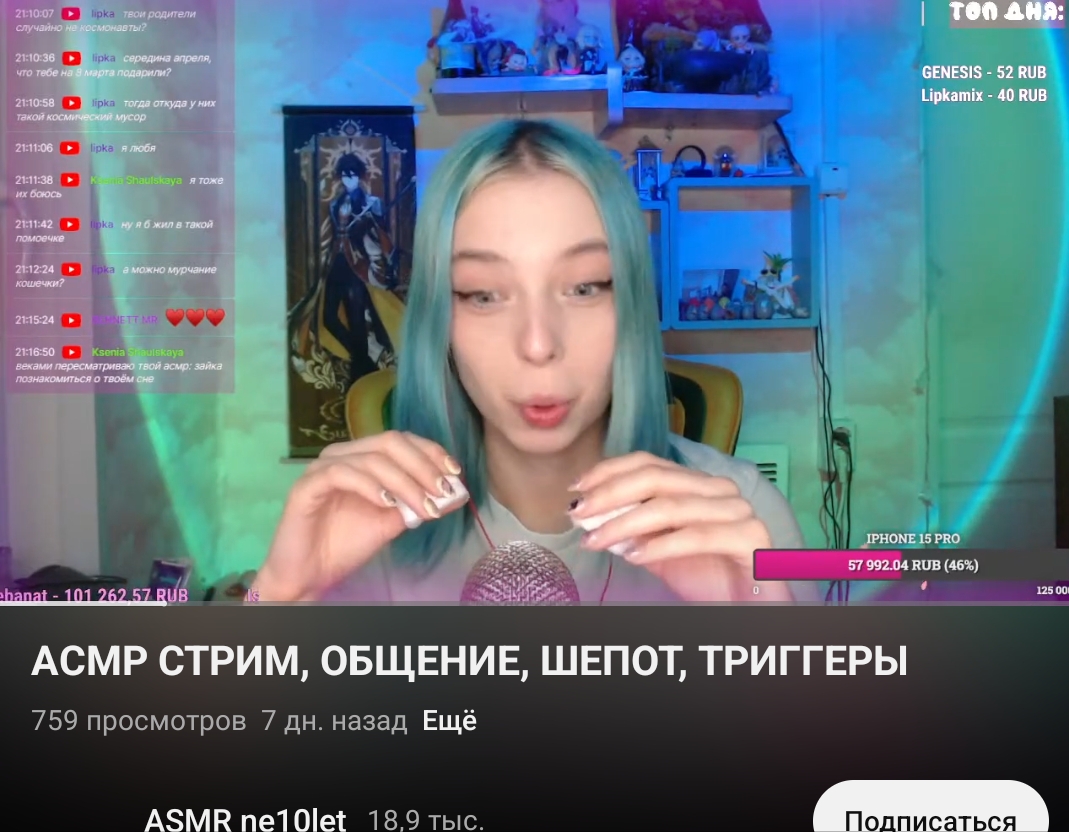 Тред картавой, харизматичной, синеволосой няши, гении мурашек и ролеплеев, матери русского матриархата - Лины! Играет в доту, мурчит в дискорде, стримит, пилит довольно ламповый и душевный АСМР и периодически заглядывает в тред.