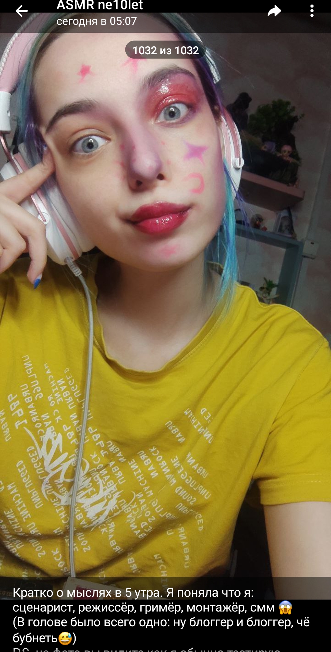 Кратко о мыслях в 5 утра. Я поняла что я: сценарист, режиссёр, гримёр, монтажёр, смм 😱 (В голове было всего одно: ну блоггер и блоггер, чё бубнеть😅) P.S. на фото вы видите как я обычно тестирую новые техники в макияже перед созданием финального образа 💅🏻