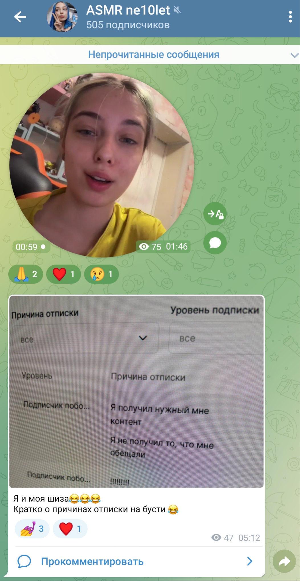 теперь всё понятно почему ты так уверена в своих силах уволилась и на канал резко стали подписываться, он и крутит ботов тебе за денюжку и актив тебе делает