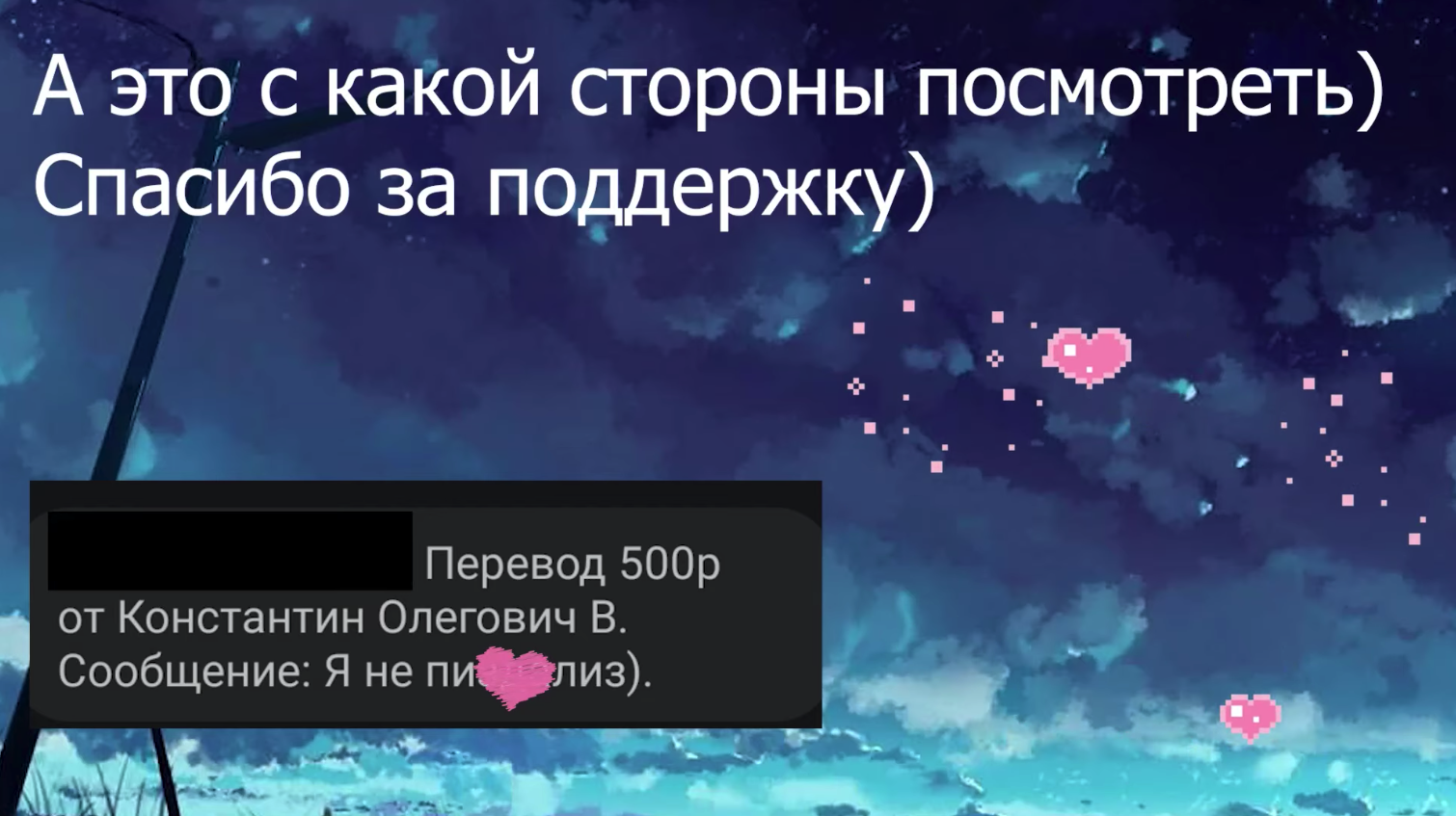 но кто тебе донатит, просто страшно представлять даже что это за за люди которые все как один скрываются за аниме аватаркаами и особо не отличаются интеллектом в комментариях.