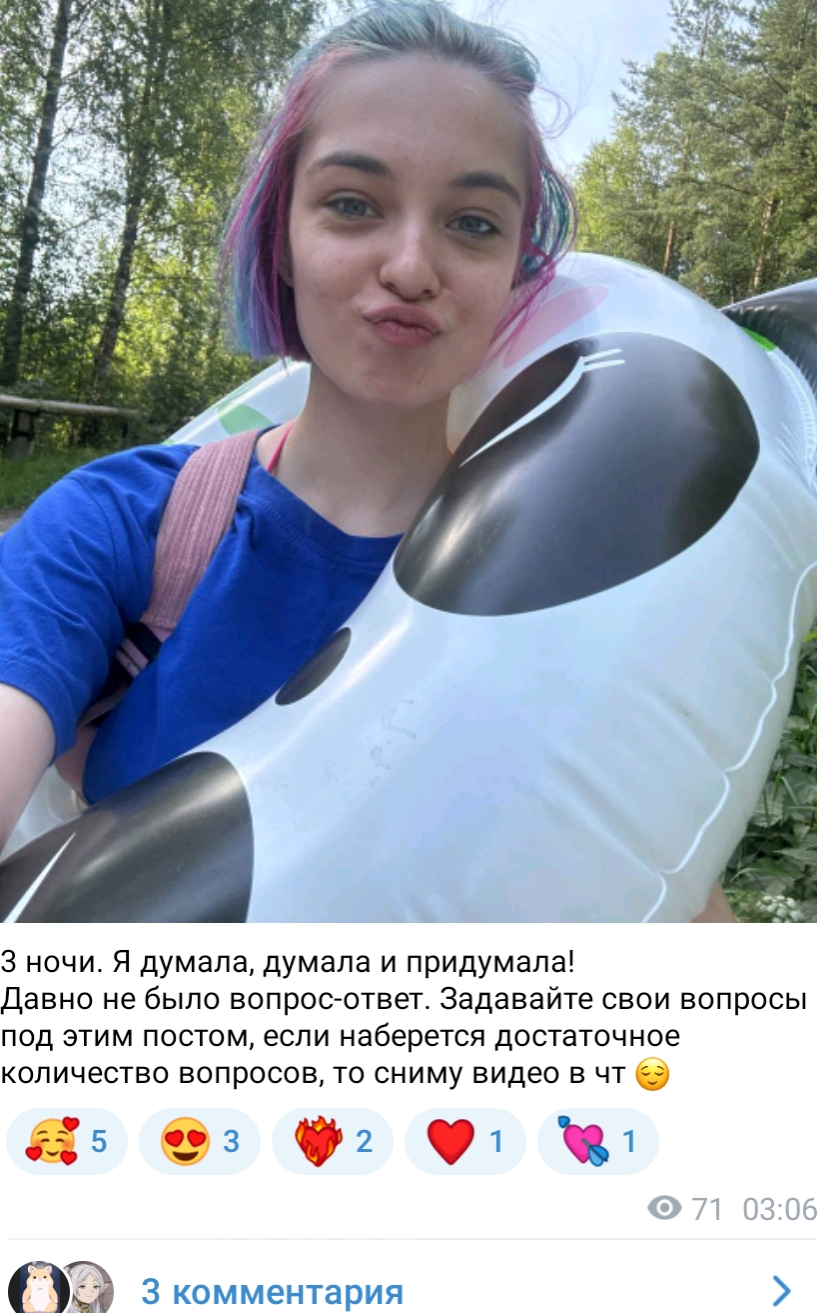 1. паспорт свой покажи где родилась 2. причину увольнения с озона 3. егэ твои баллы, где сдавала 4. что делала по вечерам всю весну в лесу в холод мороз куда ходила и до ночи пропадала. 5. и да. удали в своей старой группе вк где ты на фоне флага 6. и извинись передо мной публично за всё. 7. а ещё. заблокируй половину людей которые общаются у тебя на мове в телеграм канале и извинись за использование на стрииах неоднократно их языка.