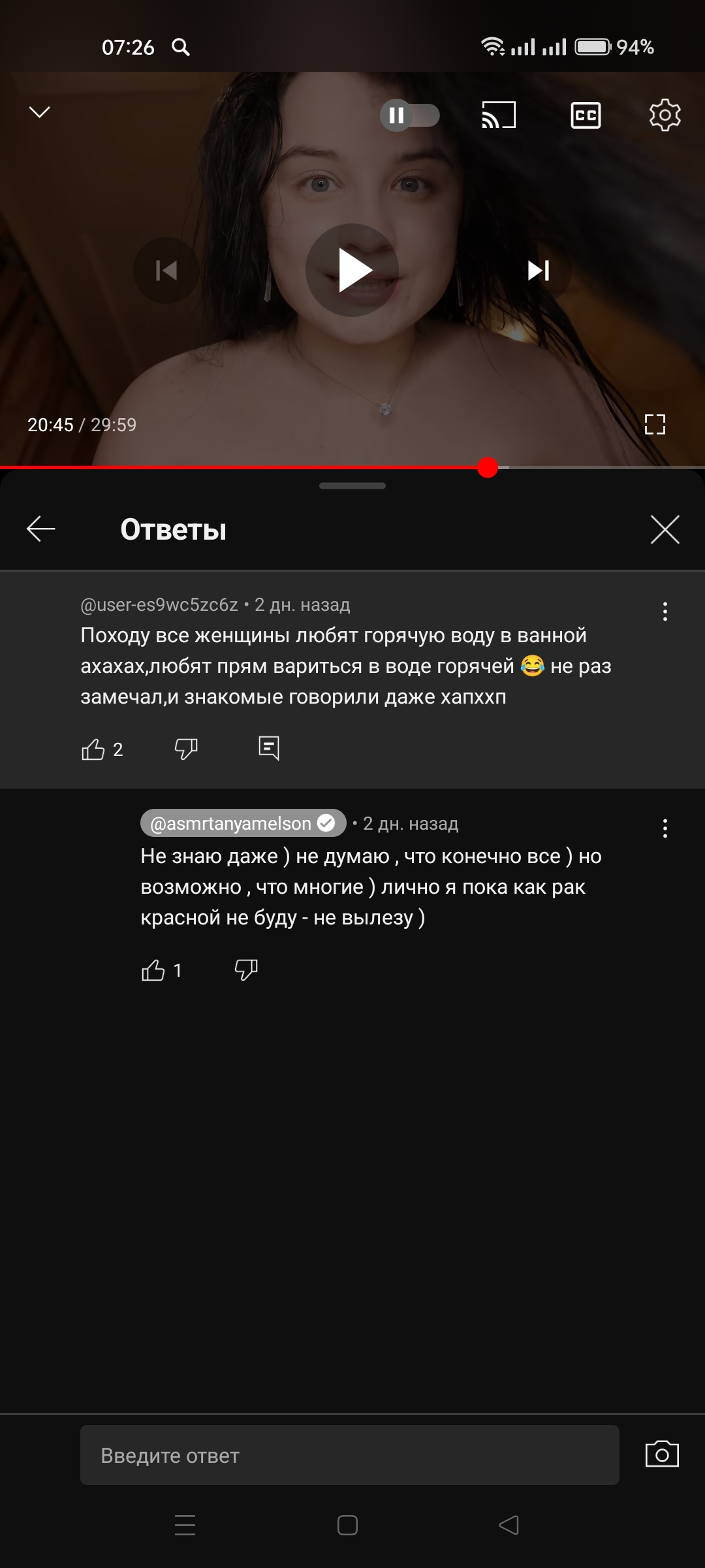 >>171274 Бля, единственное, что смущает, это то, как она разговаривает. Хз, аутизм это, а может, волнение перед камерой, но те же ее ответы в комментах странноватые какие-то.
