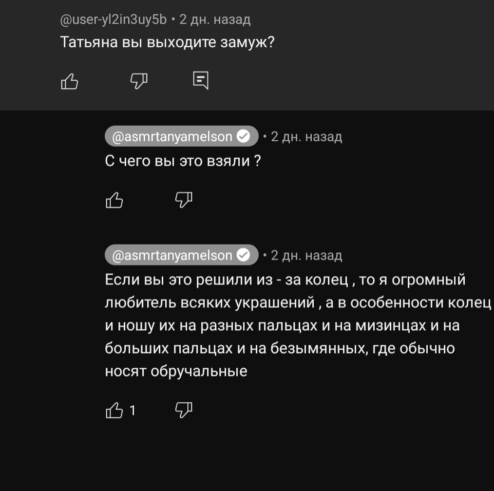 я уже даже молчу про то как она нося кольо на руке в комментах на ютубе пишет что не замужем.