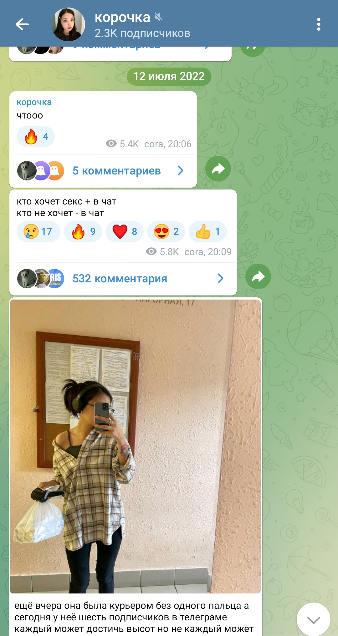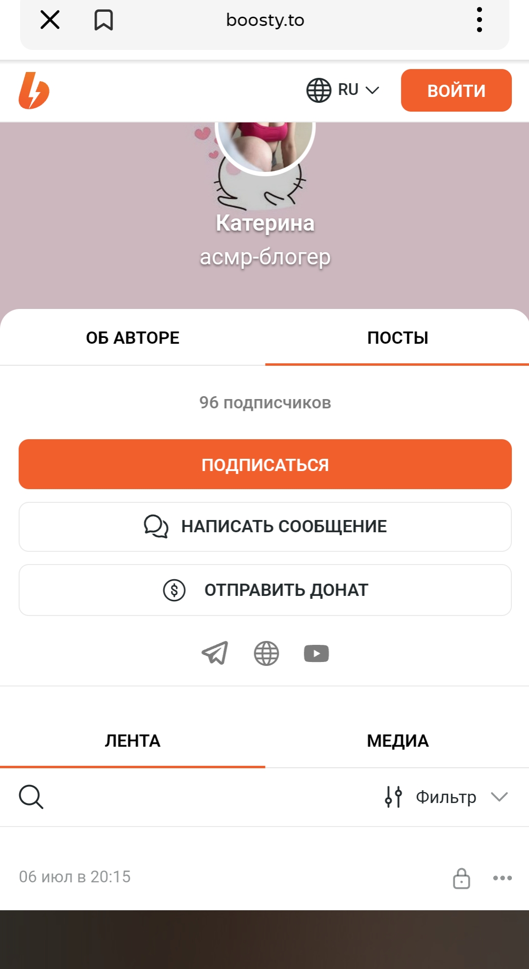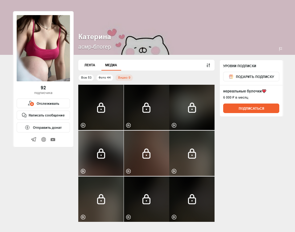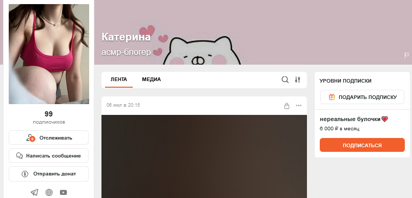 но за июль почти ничего не выкладывала и всё снесла. и взялась за ютуб и телегарм канале боеле менее. бусти осенью наверное снесёт как я и говорил в том треде. и пойдёт с мужем ''работать''