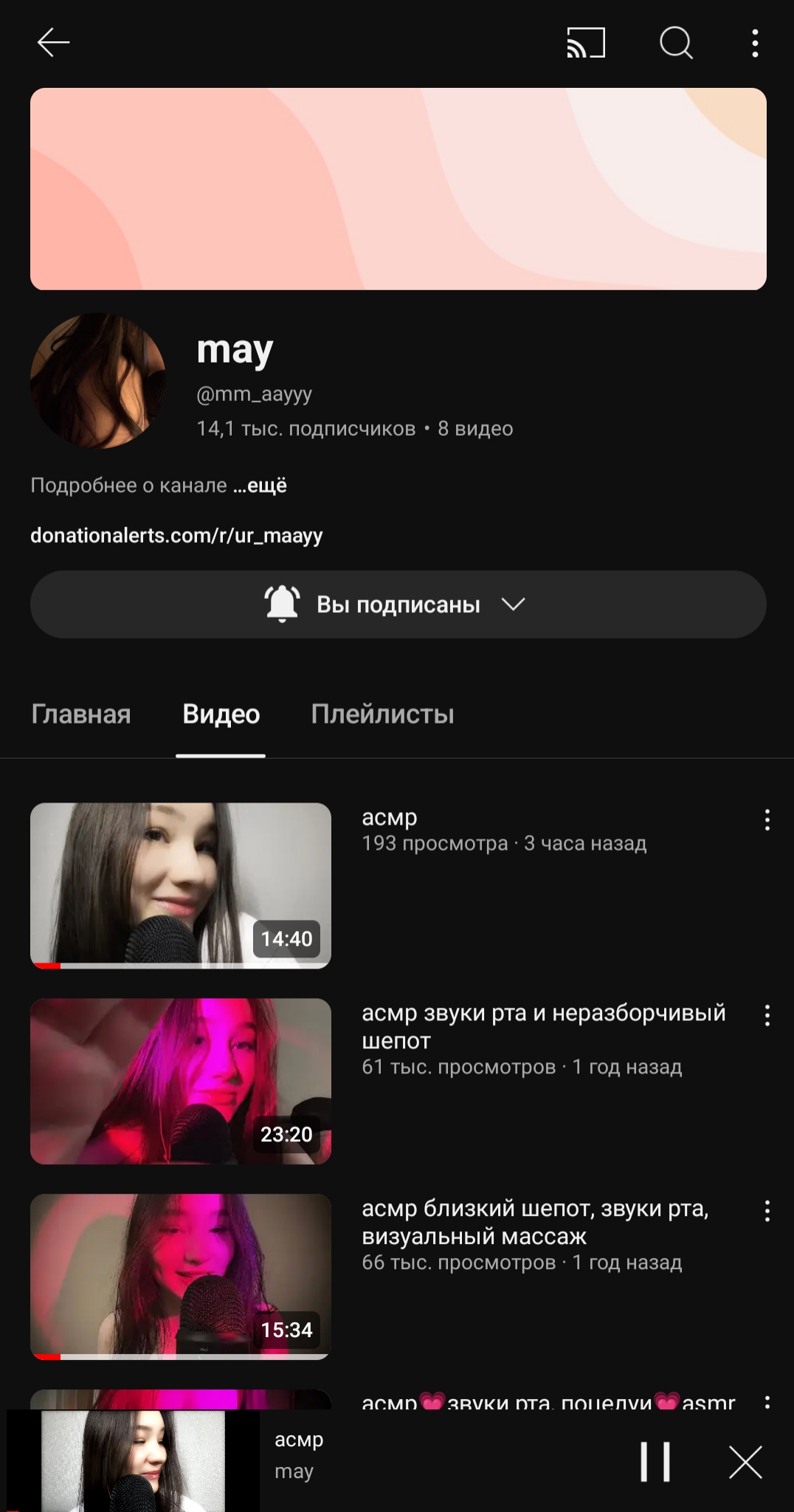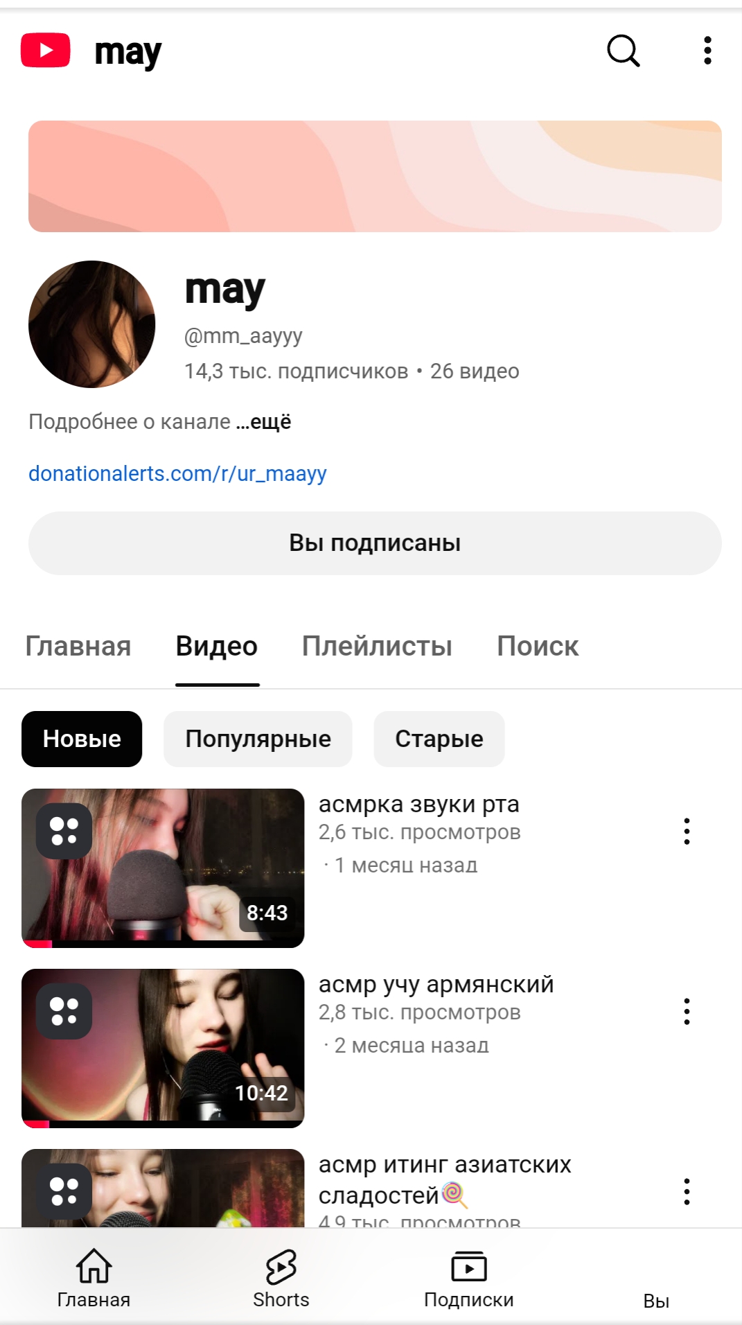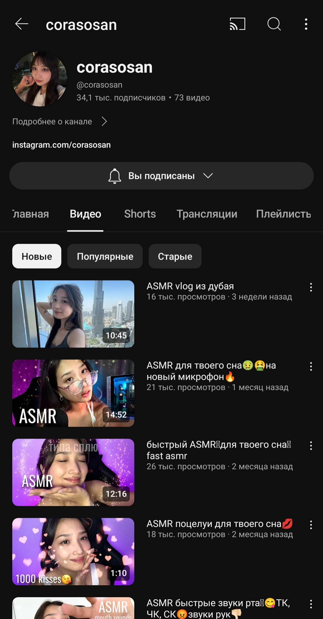 вроде банальный канал очередной асмр девочки, но недавно у неё появилась всё та же, банальная, очередная приватка именуемая как бусти, контент там вполне смотрибельный(до этого она хотела открыть приват в тг и постить там своё тело, но из личной переписки я узнал что парень её немного против этого, но сейчас имеем что имеем)