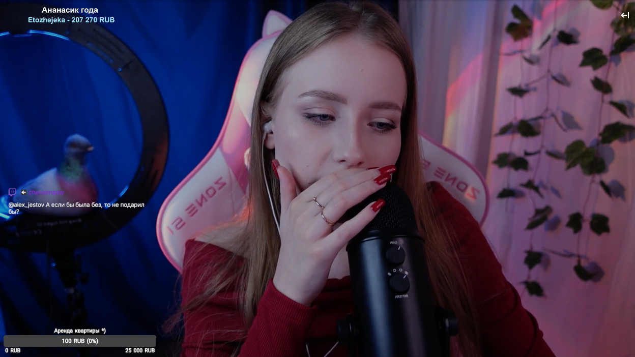P.s. правда, правда видно что это проэкт изначально, потому как у нее с первых же стримов все было поставлено профессионально, свет монтаж и т.п. Явно что она это делала все не сама, обычные начинающие стартуют с лампочкой от холодильника на старый гелакси 7, потом улучшается качество и т.п. ну прогресирует стример вобщем, тут было видно сразу что эта цапля действует не одна.