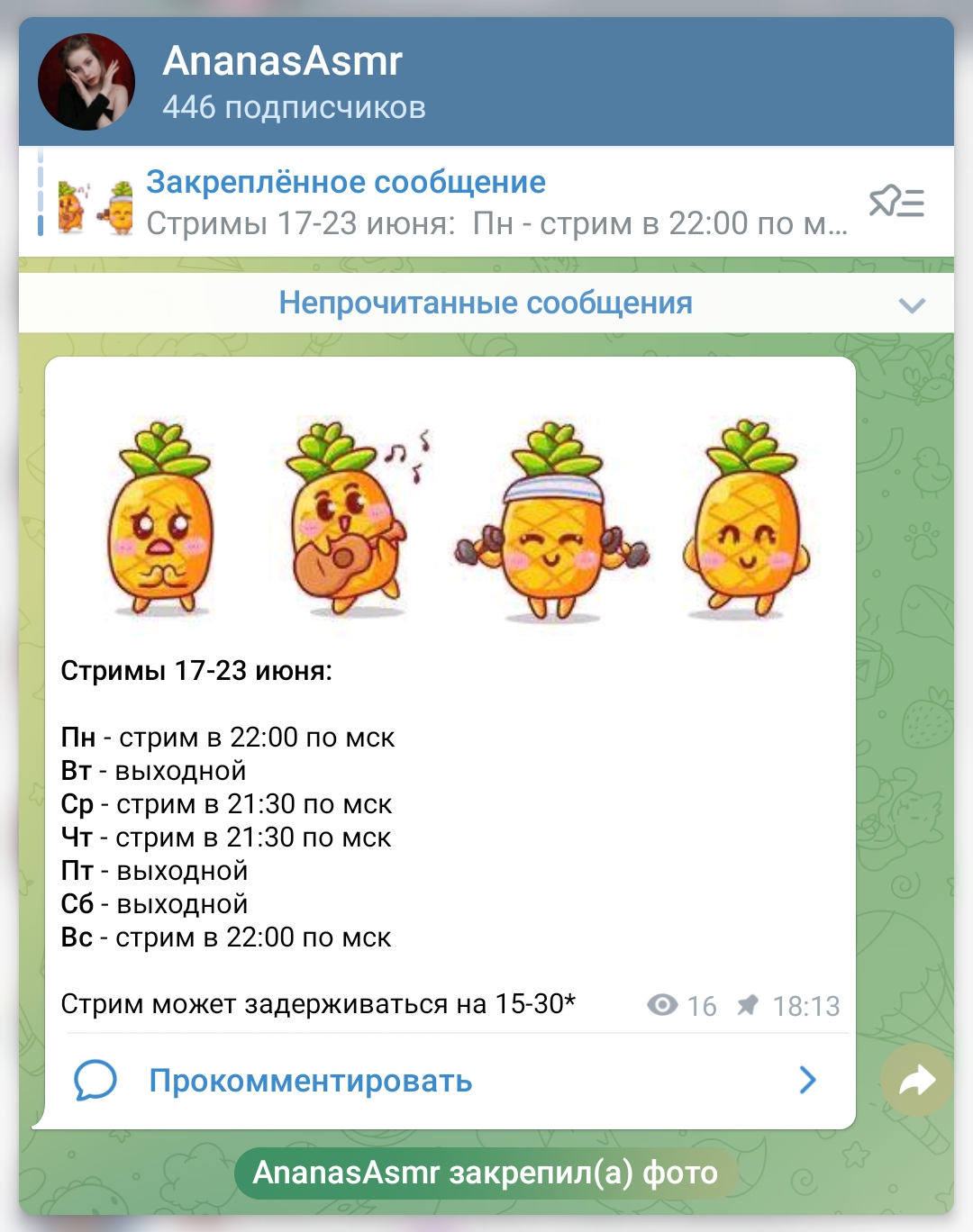 Спасибо, что удерживаешь тред на плаву, благодарна тебе. Следующий стрим проведу не одна, а с парнем, но он будет немножко за кадром. Ждём тебя, ананасик.