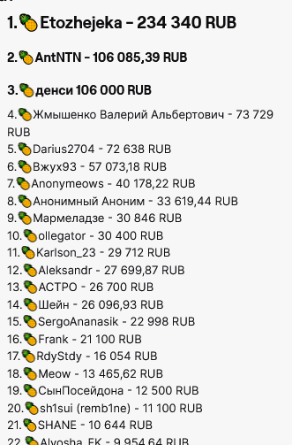 В любом случае вроде даже полгода донат Ваньки не провисел. Представь ебало того симпа, который бы задонатил ей на новогоднем, попал в топ года, а 1го января отсчёт с нуля пошел.