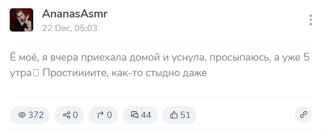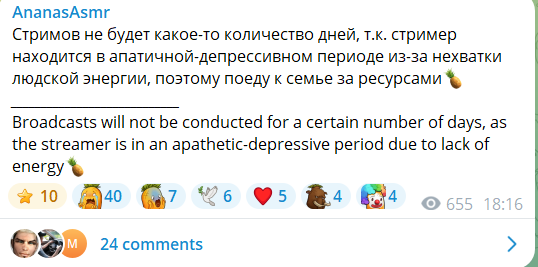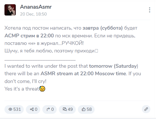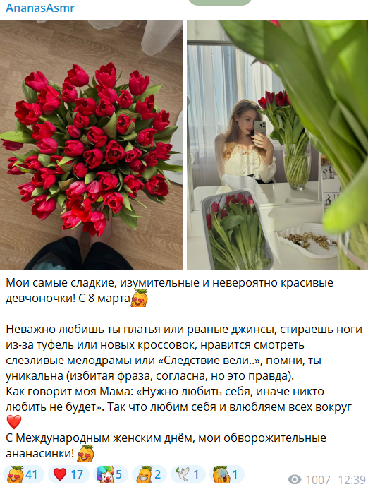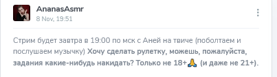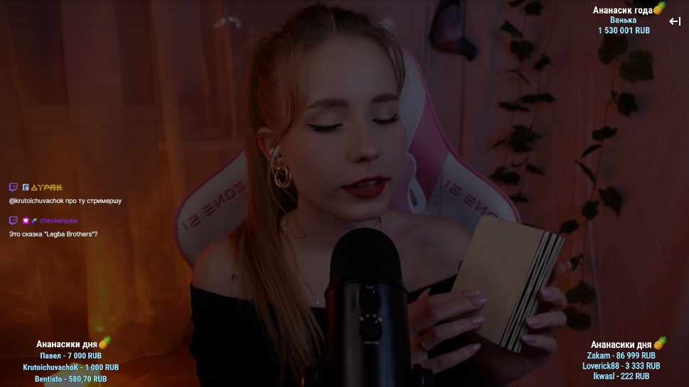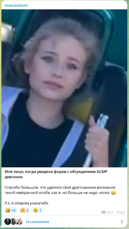 Про гадание так-то правда, асмр-аудитория не резиновая, все постепенно понимают какая она. Как тут анон выше писал, у нее онлайн стримов меньше чем в прошлом году, это как раз показатель.