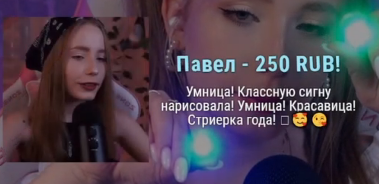 Это медиапроэкт, причем в коллабе, я ее смотрел первые пару месяцев с основания канала на твиче, сразу напрягло, что у такой сельской лохушки все так профессионально поставлено, явно уже имела с этим дело в качестве зрителя ассистента, к тому же когда у нее спросили про супермарио.. она сказала поникшим голосом : да.. я знаю ее. И стримят они в одно и тоже время, думаю и донаты пополам делят. Как ее не коробит последнее забирать у фуфелов, ладно задроты-айтишники этих не жалко, но основная аудитория на которую нацелен ее образ Дева-спасительница: доходяги, каличи и хроники. Был такой зритель он же первый топдонатер занесший сотку, antant ну по его же речам было видно, что чел собрался улетать с планеты и выгребает последнее со своей сберкнижки, дело не в том что он мог бы потратить это последнее на более благие цели.. а не скидывать троглодиту на очередную пару босоножек "гулливер" ... дело в том что она продолжает с такими персонажами до последнего заигрывать и обманывать в том числе потому как большинство из ее донатных полосок просто липа ... из выполненного были только брекеты и то она поставила железные т.е. самые дешевые, а насобирала по итогу на дюжину сапфировых.