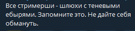 Может кто-то сделает, в чем очень сомневаюсь. Хотя они и к другим марамойкам подходят, всё-таки типичная стримящая баба, заботящаяся лишь о своем кошельке. Так что можем и услышать когда-нибудь.