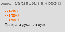>>169997 А зачем ты в одном посте пишешь без своих переносов строки, а потом отвечаешь с переносами, как обычно? Думаешь никто не видит, что это все ты пишешь? Там это сразу видно из за твоих проблем с построением предложений