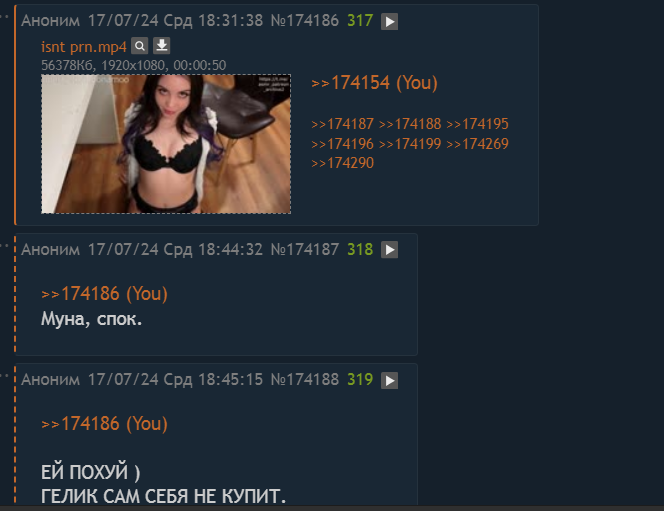 >>174367 И на бусти еще захуячила. И в инсту. Так ей мой ролик зашел!